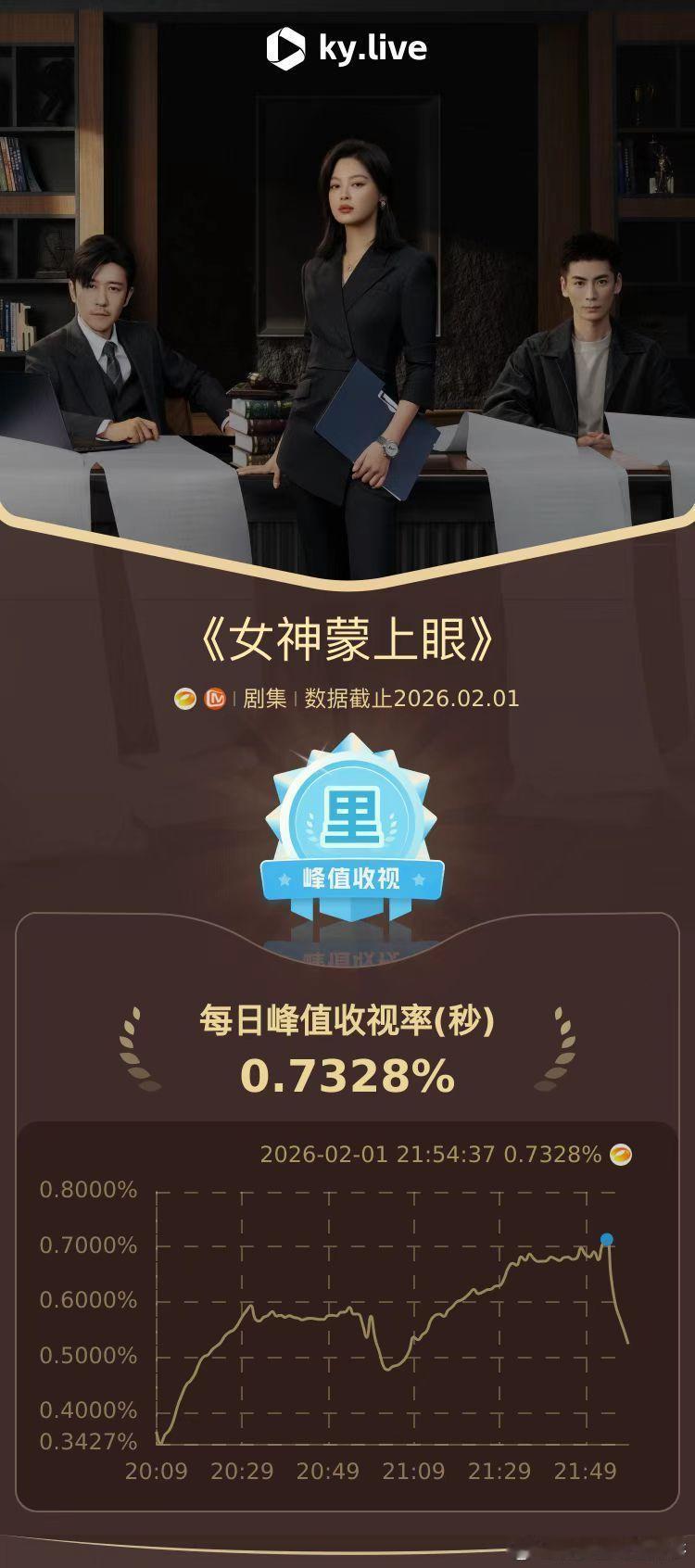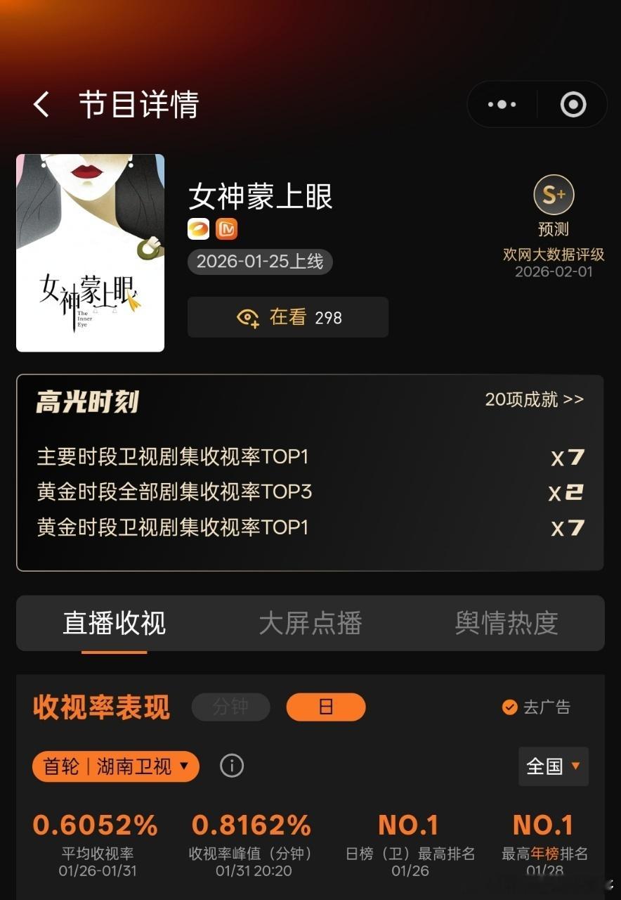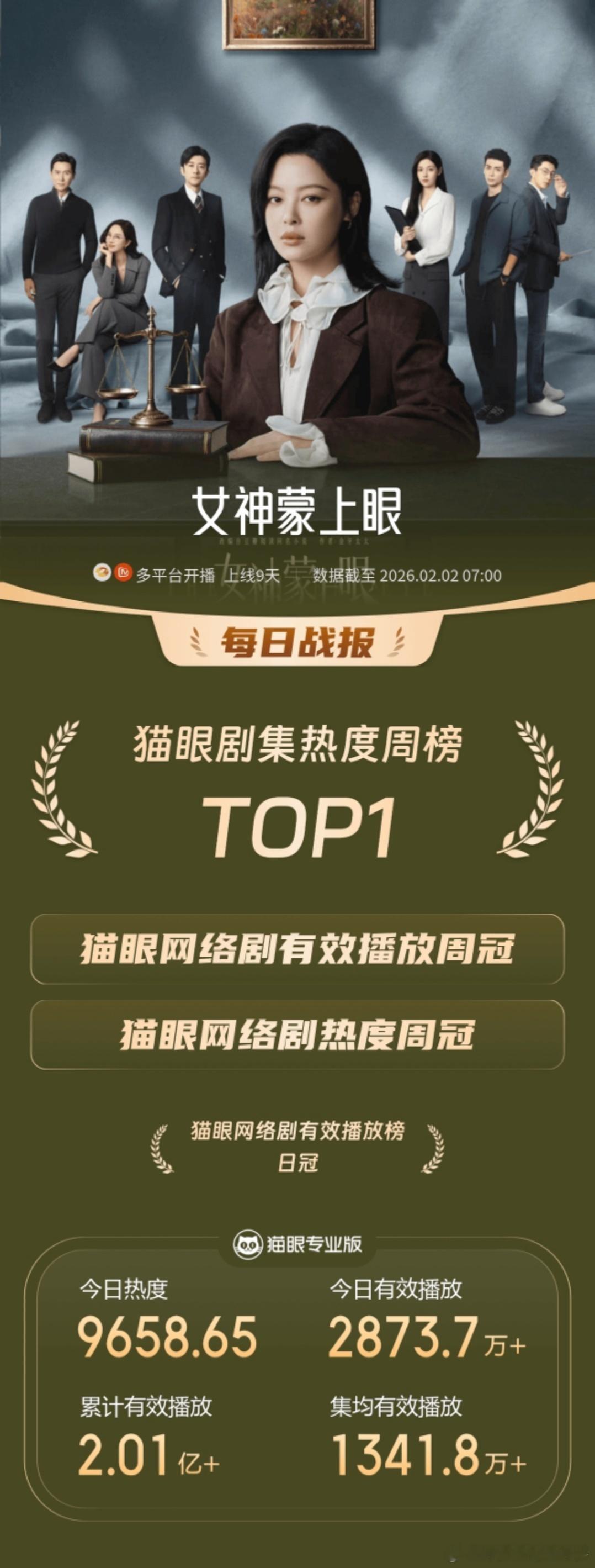 低估辛芷蕾的扛收视能力了都说律政剧难爆,辛芷蕾《女神蒙上眼》开播即卫视同时段收视第一,蝉联七连冠,酷云峰值0.7328,平台热度断层第一,猫眼9761,蕾子实绩太曼妙,收视小福星实锤!