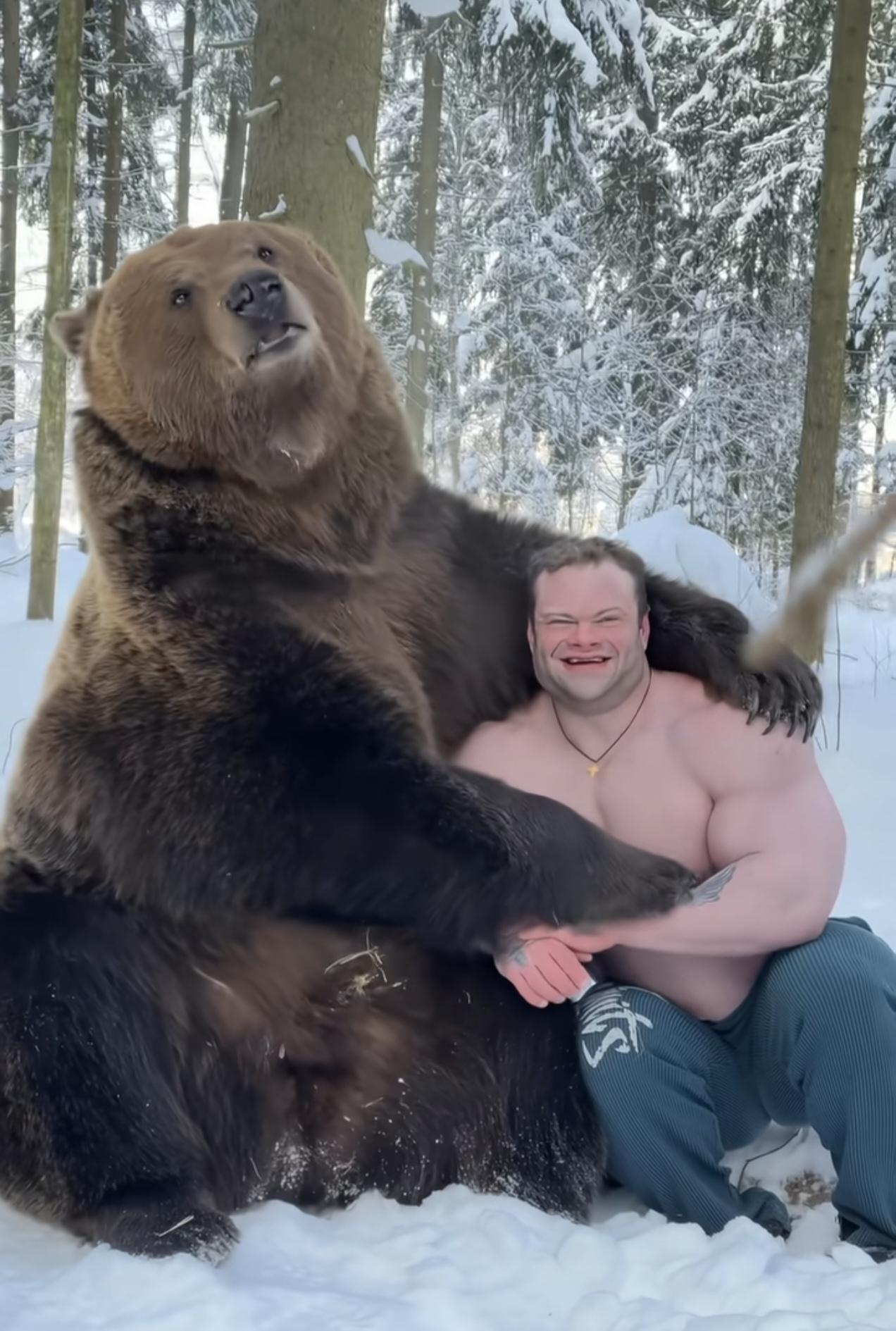 棕熊到底有多大只?俄罗斯健美巨兽达尼洛夫在棕熊面前显得格外小巧。 东北地区素有:一猪二熊三老虎之说。论对农作物的破坏和伤人数量来说,野猪排第一,棕熊就排第二了。 很多小说和影视作品中,熊瞎子是做为终极猛兽出现的。 棕熊个头最大能长到2米8,体重能到600千克,奔跑速度最快56公里每小时,当他奔跑起来就像一台坦克一样。