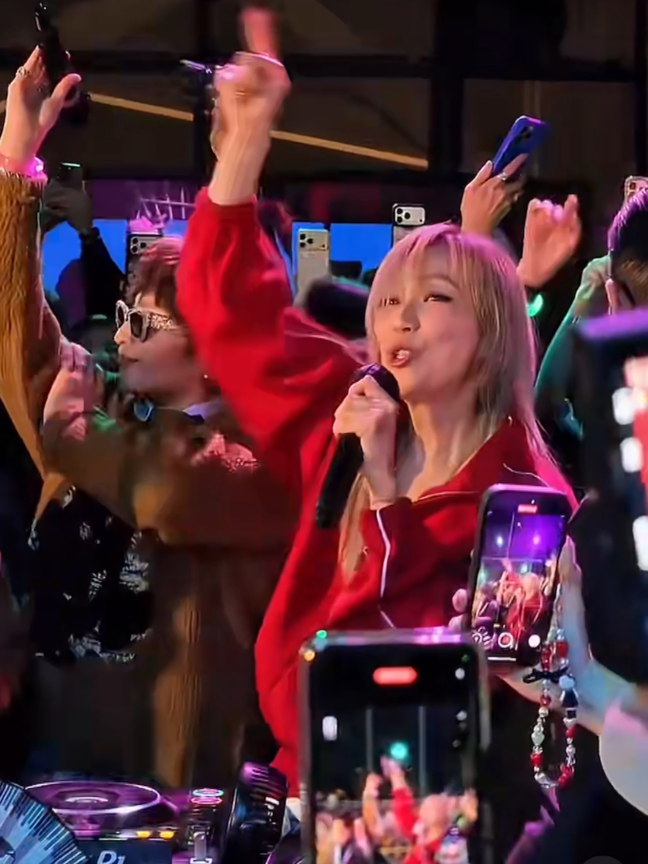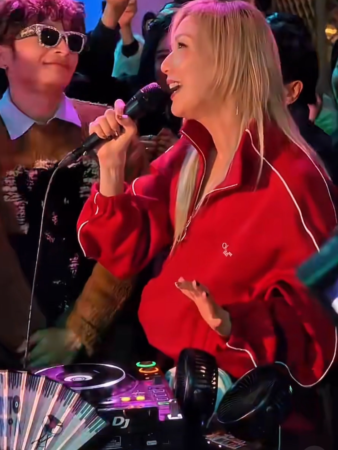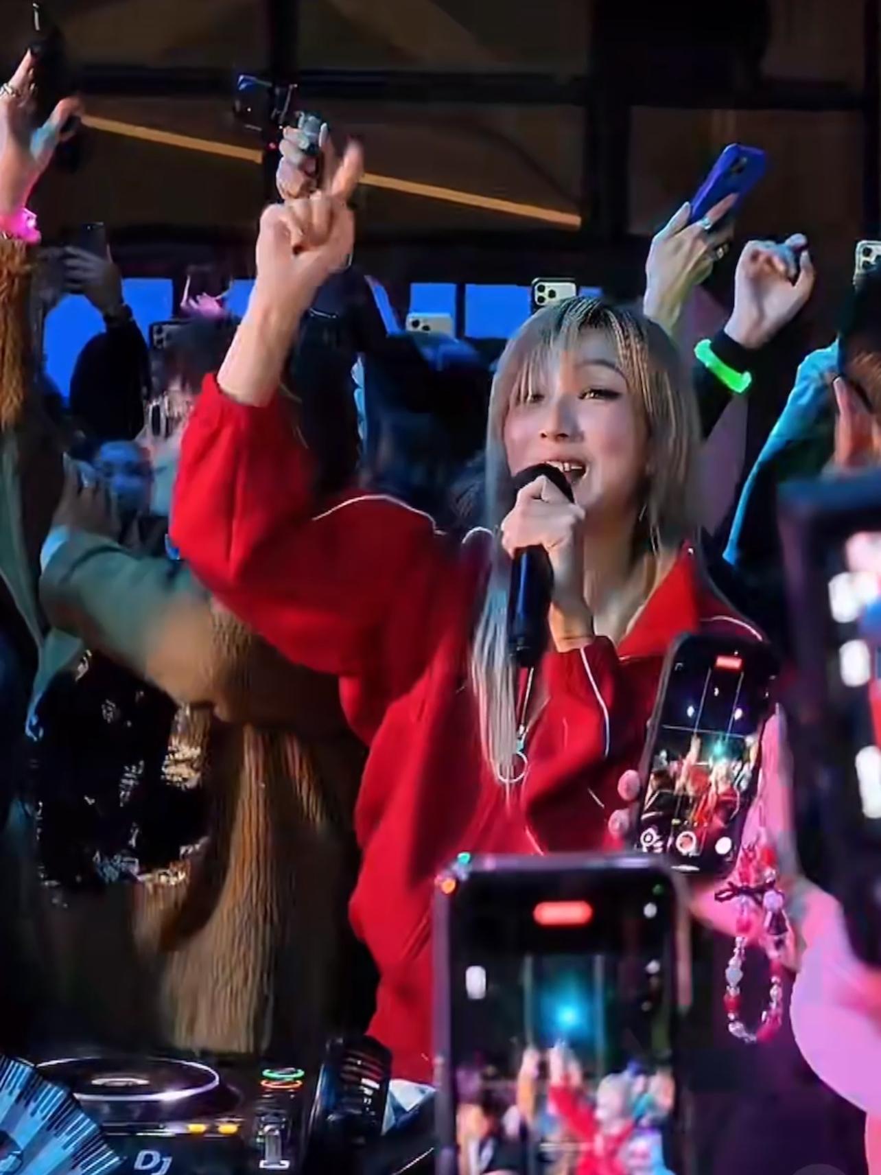郑秀文又唱又跳活力四射,点燃气氛。郑秀文突袭夜场,穿着鲜红色运动套装现身,跳上DJ台唱串烧歌曲,一首接一首,气息稳得开挂,现场气氛好热闹。