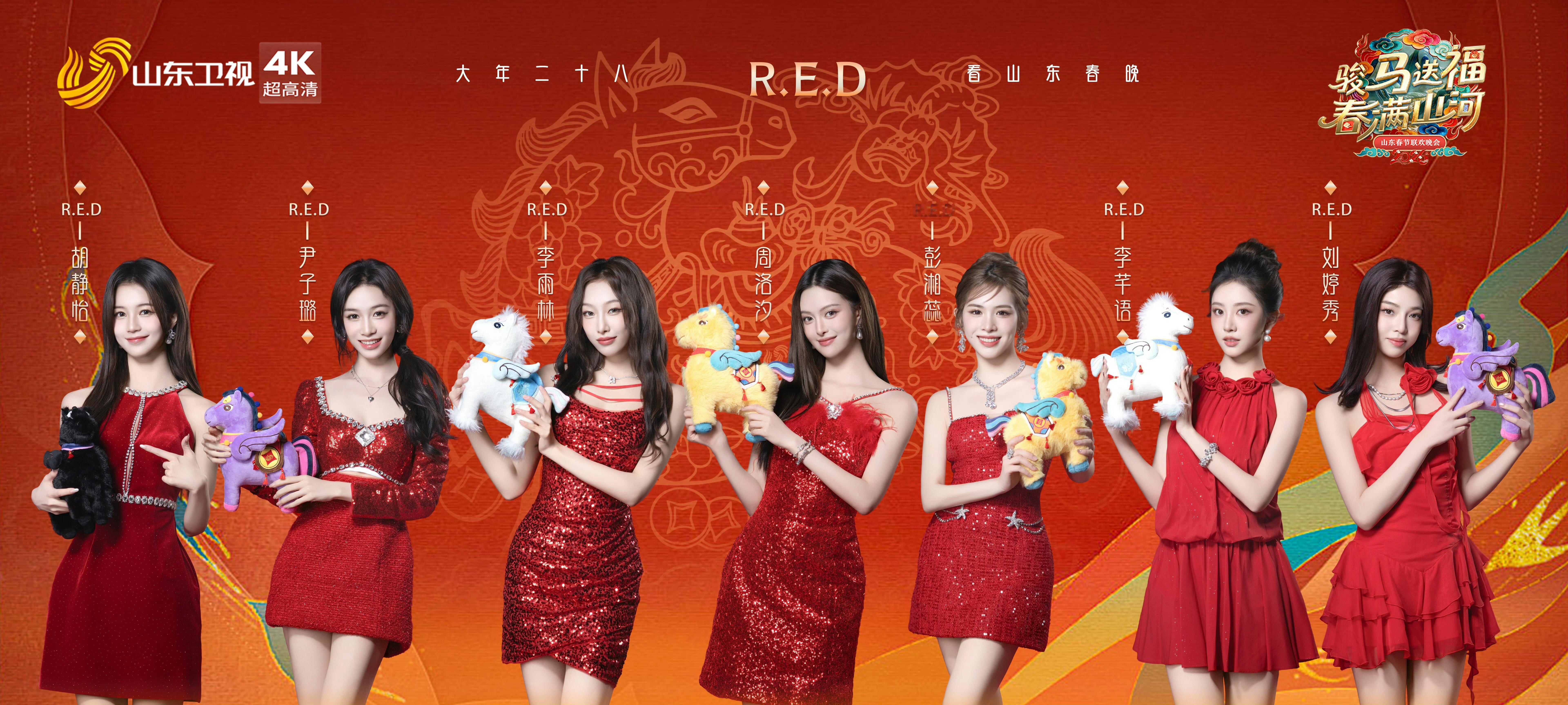 RED女团江苏山东春晚海报 RED女团官宣江苏春晚、山东春晚春晚海报红红火火过大年🔥胡静怡 李芊语 刘婷秀 周洛汐 彭湘蕊 李雨林 尹子璐