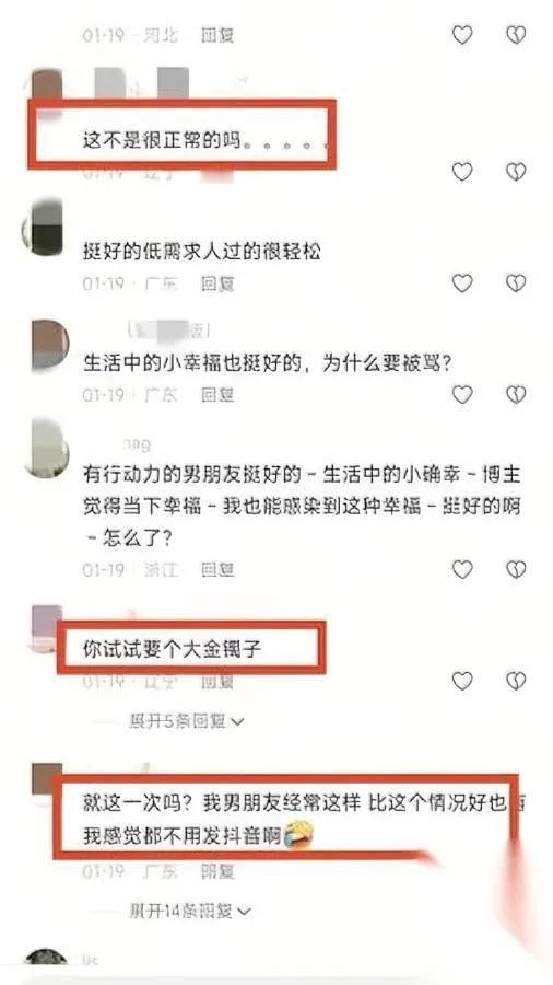 我发了条烤鱼视频 差点被骂到怀疑人生。 就是上周男友带我去吃蒜香烤鱼,他记着我怕刺,提前把鱼肚子的嫩肉挑出来,还特意让老板多放了把香菜——这些小细节我拍进视频里,配文“今天被宠到了”。结果评论区一半人炸了:“一顿烤鱼就知足?看来彩礼能省了”“试试要个大金镯子,看他还记不记”,甚至有人说我“原生家庭缺爱,所以这么好骗”。 我盯着屏幕愣了:幸福啥时候成了“贵不贵”的选择题?他记着我爱吃的口味,怕我烫到手的小心,提前半小时占的靠窗位置——这些不是钱能买的“被放在心上”吗? 好在好多姐妹替我说话:“能把小事放心上的人,才值得珍惜”“知足不是傻,是懂幸福的模样”。对啊!幸福从来不是大金镯子的重量,是他眼里有你的细节:比如记得你爱喝三分糖的奶茶,比如雨天接你时偏到你这边的伞,比如烤鱼里多放的那把香菜。 你们有没有过这种“不值钱”的幸福?比如他帮你剥好的虾,或者睡前递到手里的热牛奶?来聊聊呗~