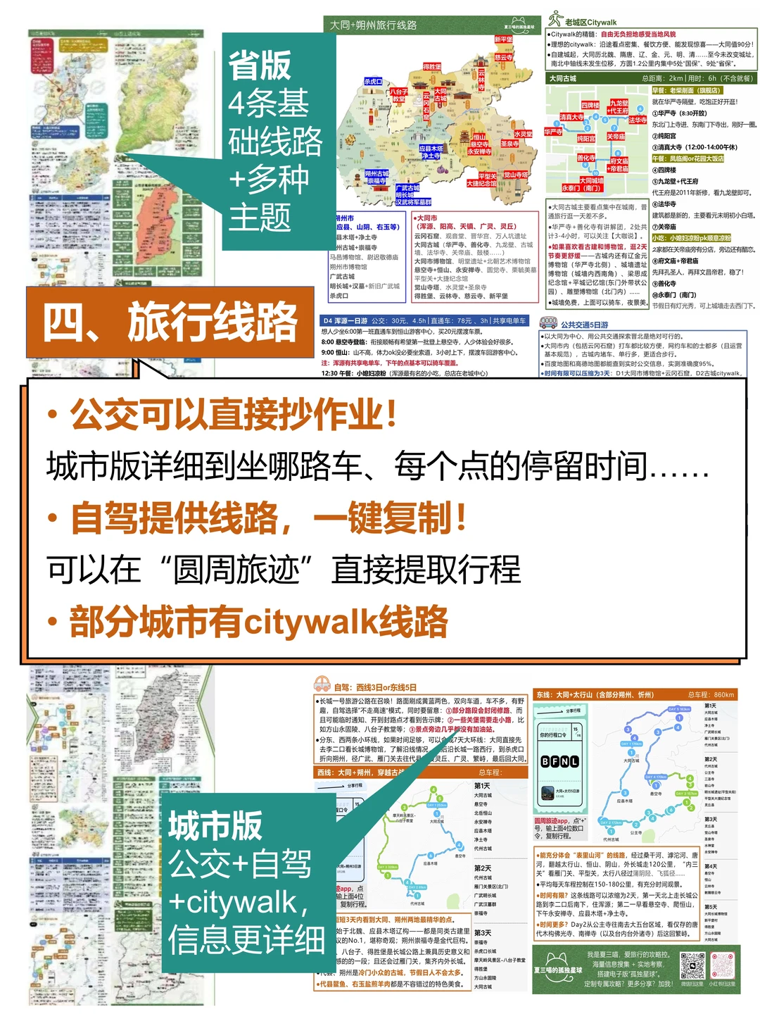▪️晋中、晋北、晋南、晋东南——4条基础线路,公交、自驾都有;