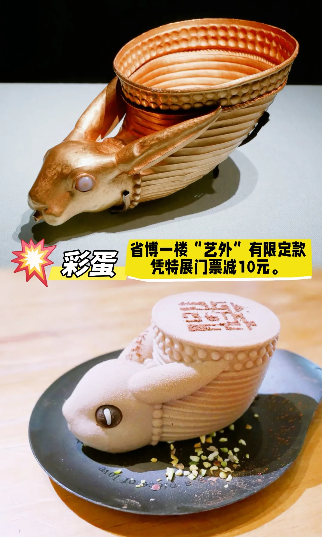 省博一楼“艺外”推出了特展限定款,兔首来通杯被做成了提拉米苏,超级萌!凭特展门票可以直接减10元。