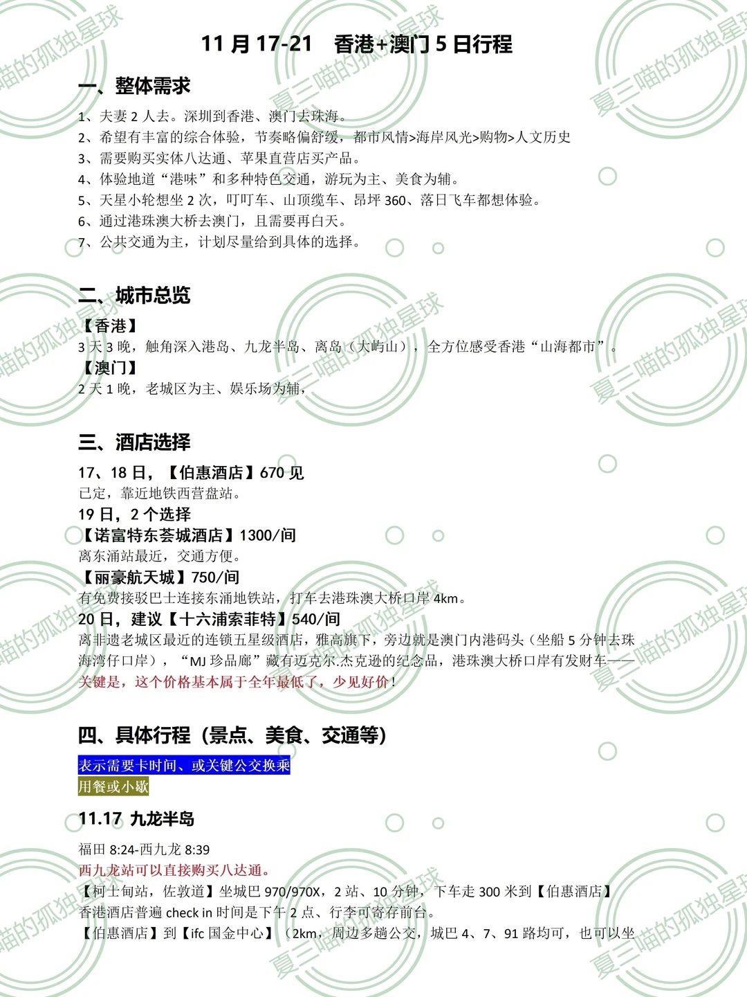 明明已经有香港3日和澳门2日的详细行程,我还是几乎熬了一个通宵才弄出来定制版。