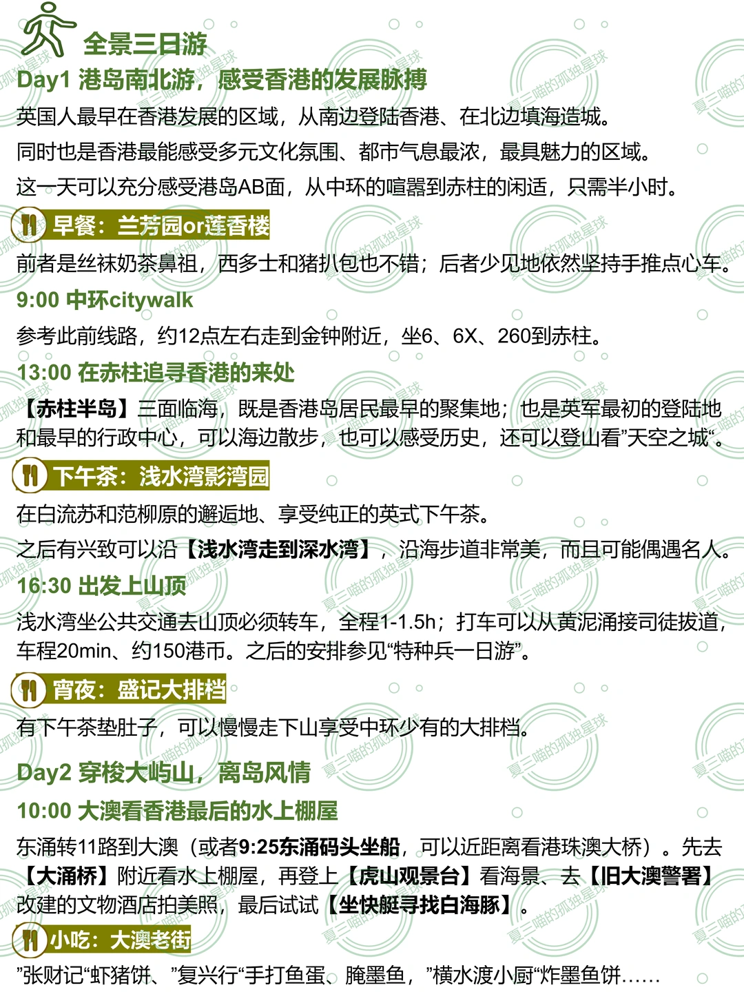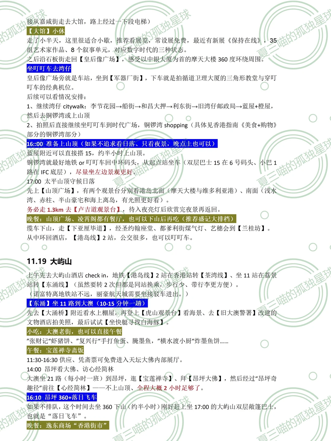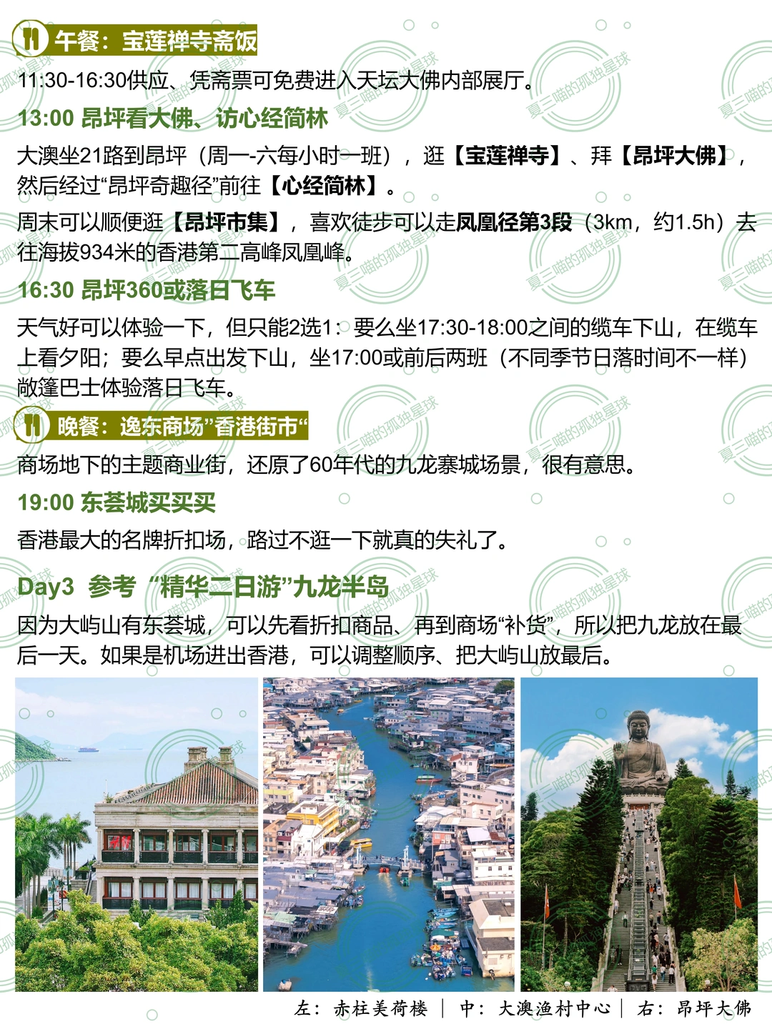 2️⃣香港3天:九龙半岛1天、港岛1天、大屿山1天,兼具都市风情、山、海,最后从大屿山直接过澳门。