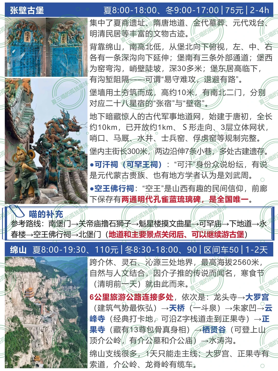 ✅周边联动:往南去霍州、洪洞(广胜寺琉璃塔绝美)、临汾