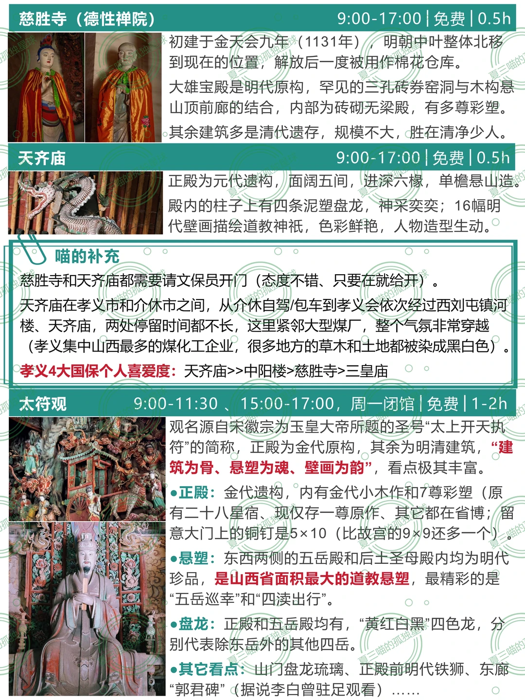 ‼️不可错过:汾阳太符观(建筑+悬塑+壁画)、后土圣母庙(明代壁画)
