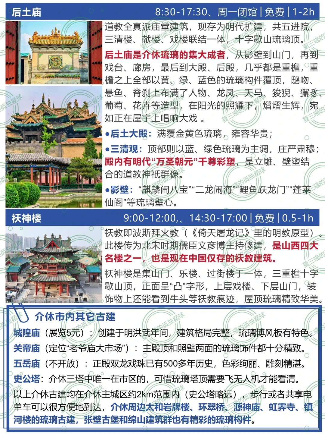 ‼️不可错过:三大琉璃代表作(后土庙、祆神楼、太和岩牌楼),王家大院,灵石资寿寺