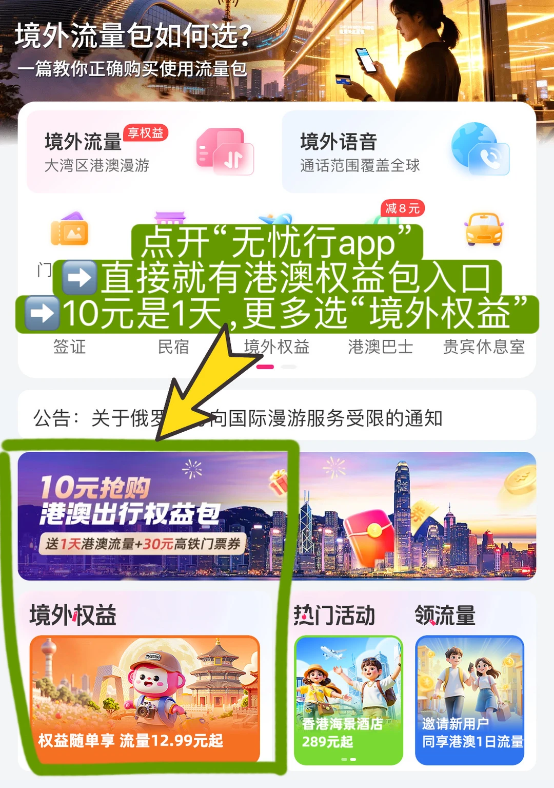 去港澳,保证手机上网是关键,“无忧行”app出了权益包。