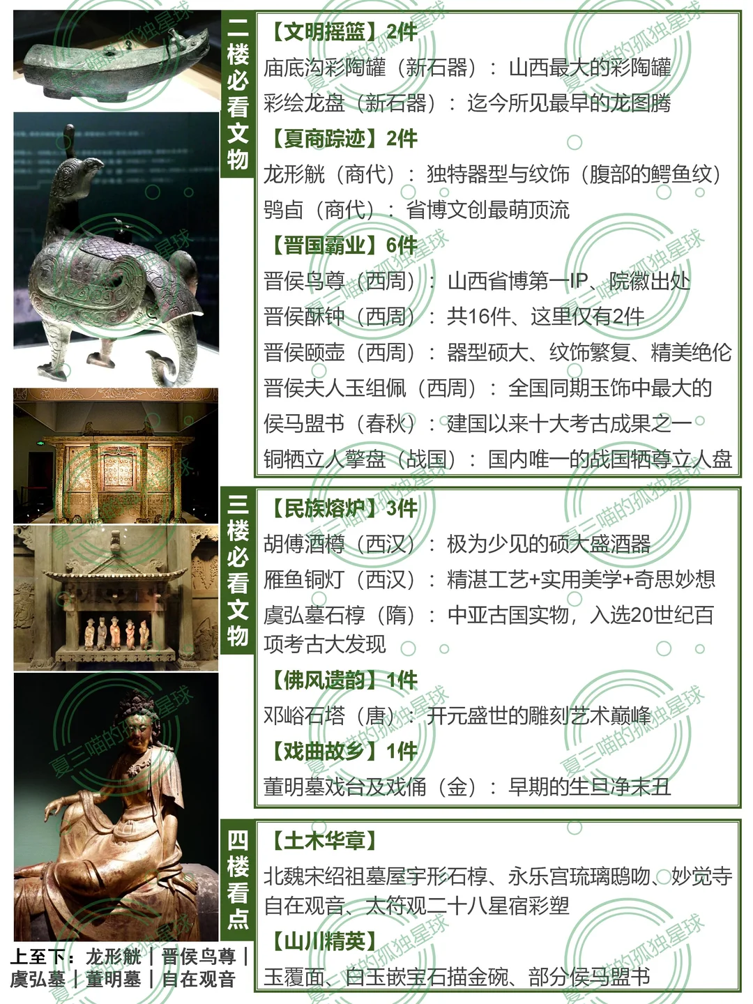 🔹省博提前3天预约⚠️重点看2楼【夏商踪迹】、【晋国霸业】,3楼【民族熔炉】、【佛风遗韵】、【戏曲故乡】,4楼【土木华章】。