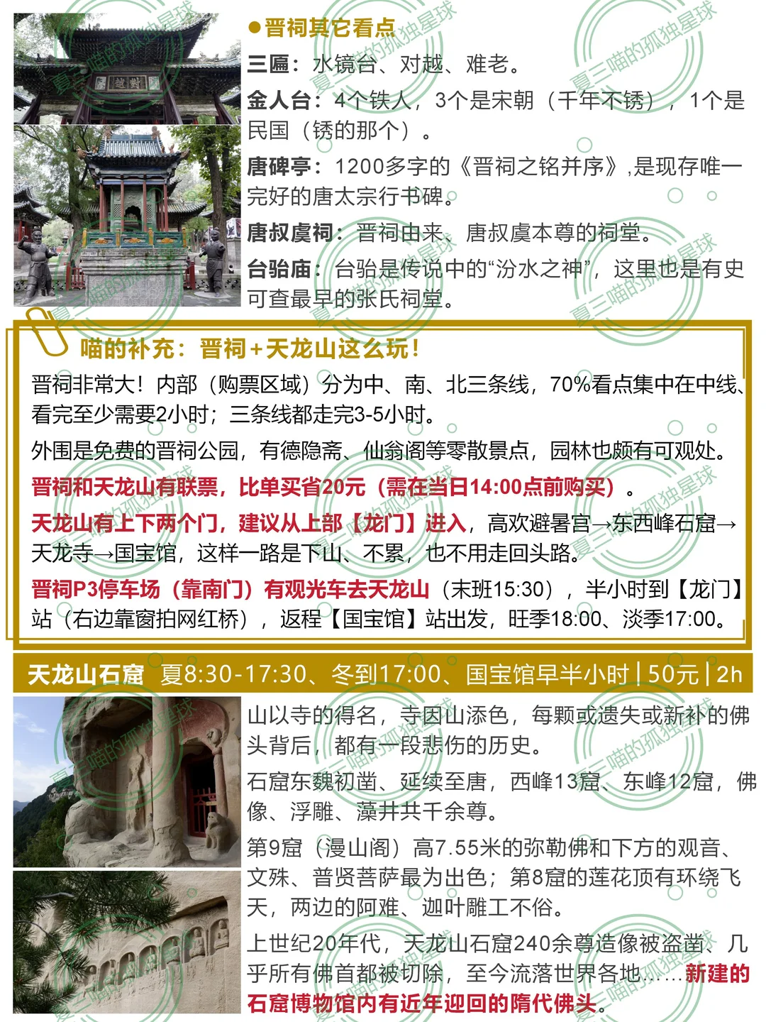 🔸晋祠和天龙山有联票(比单买省20元,必须14:00点前买、同一天使用)。