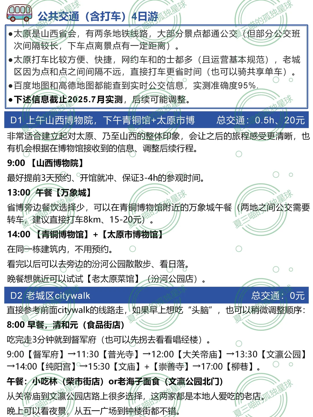 🔸太原有2条地铁,大部分景点都通公交,百度和高德能查到实时公交信息,准确度95%。