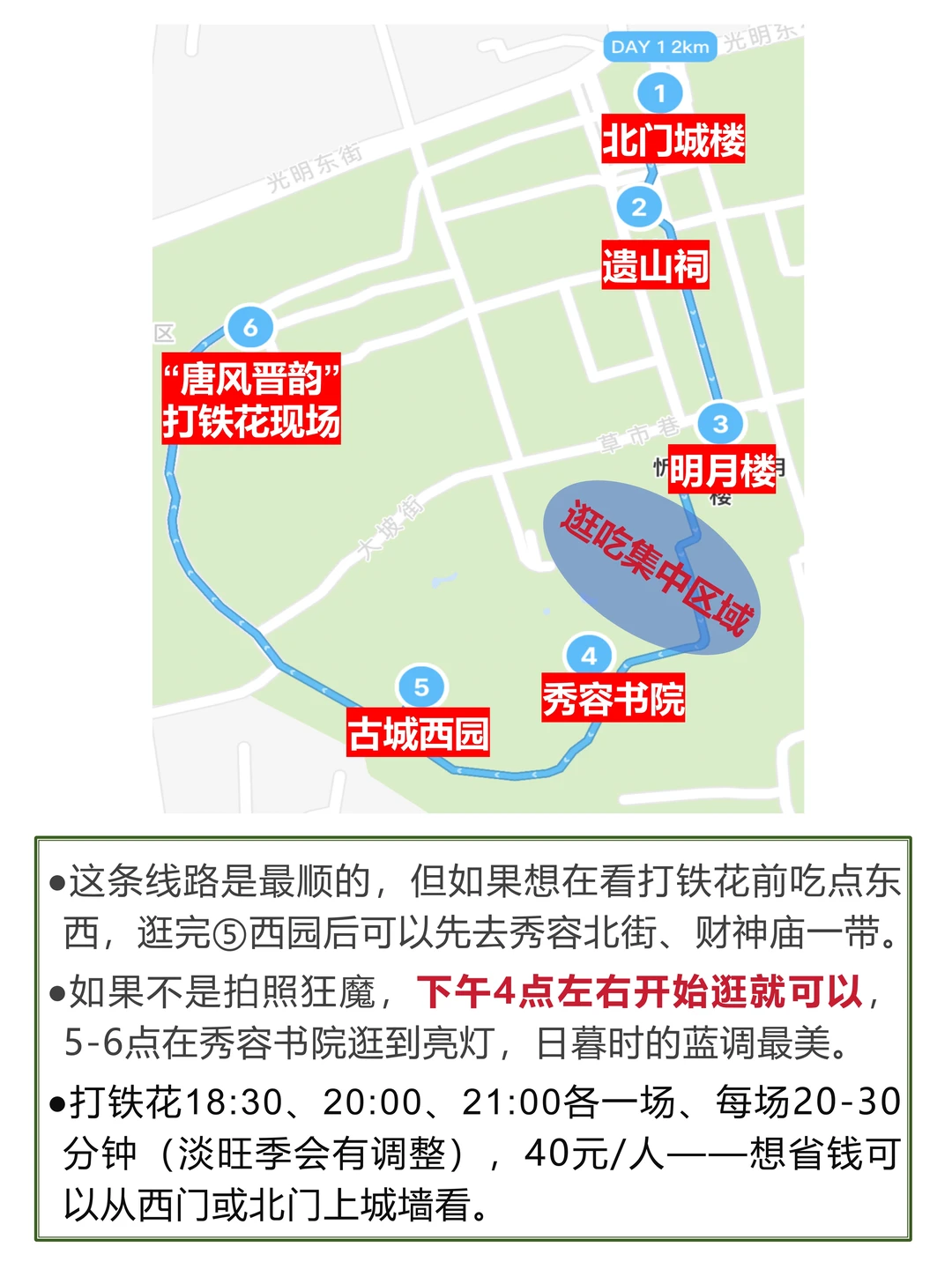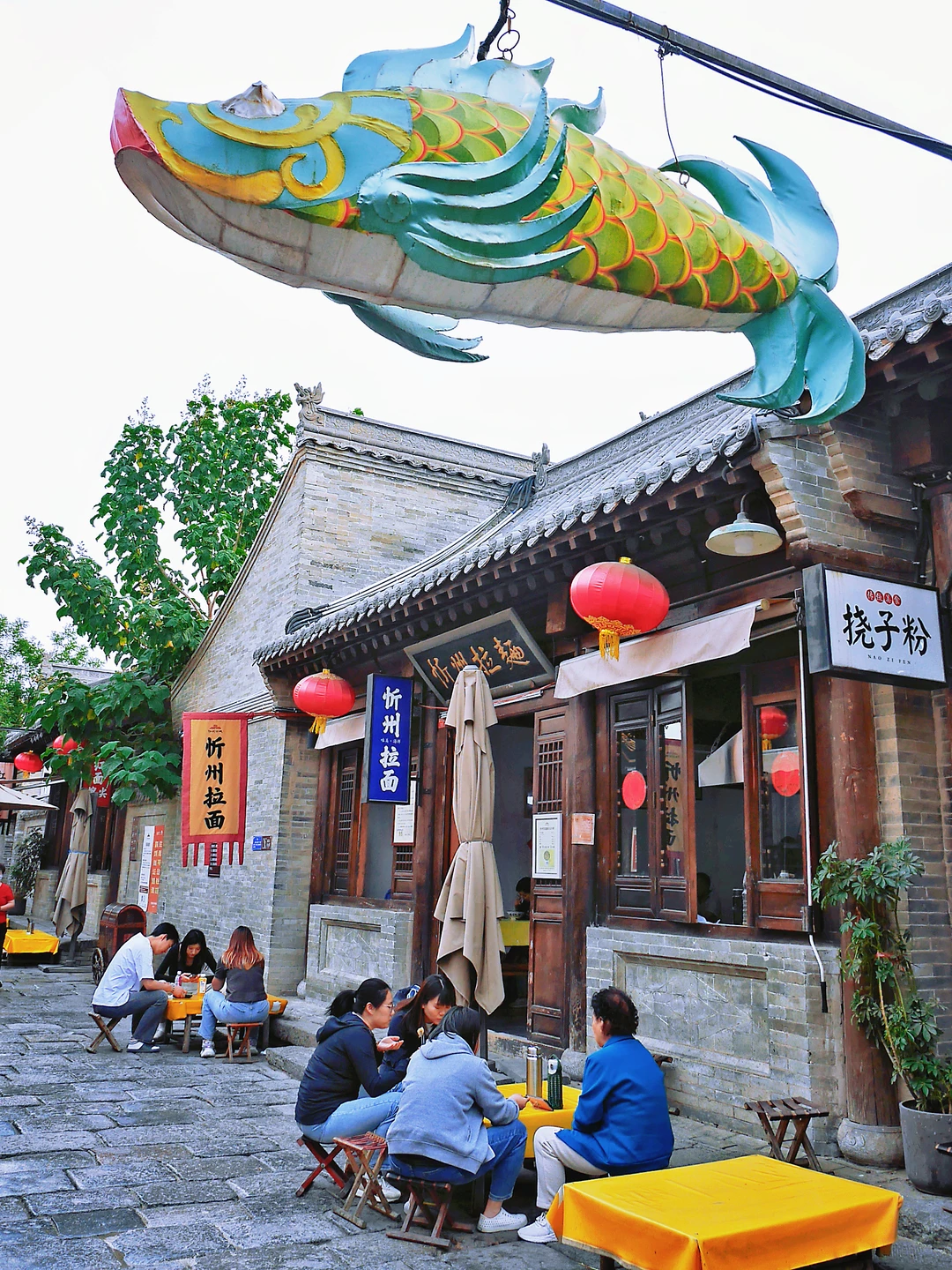 🔹推荐在4点左右前往古城,从拱辰门入,先看遗山祠、再逛秀容书院,入夜后财神庙、泰山庙周围都可以品小吃、看夜景。