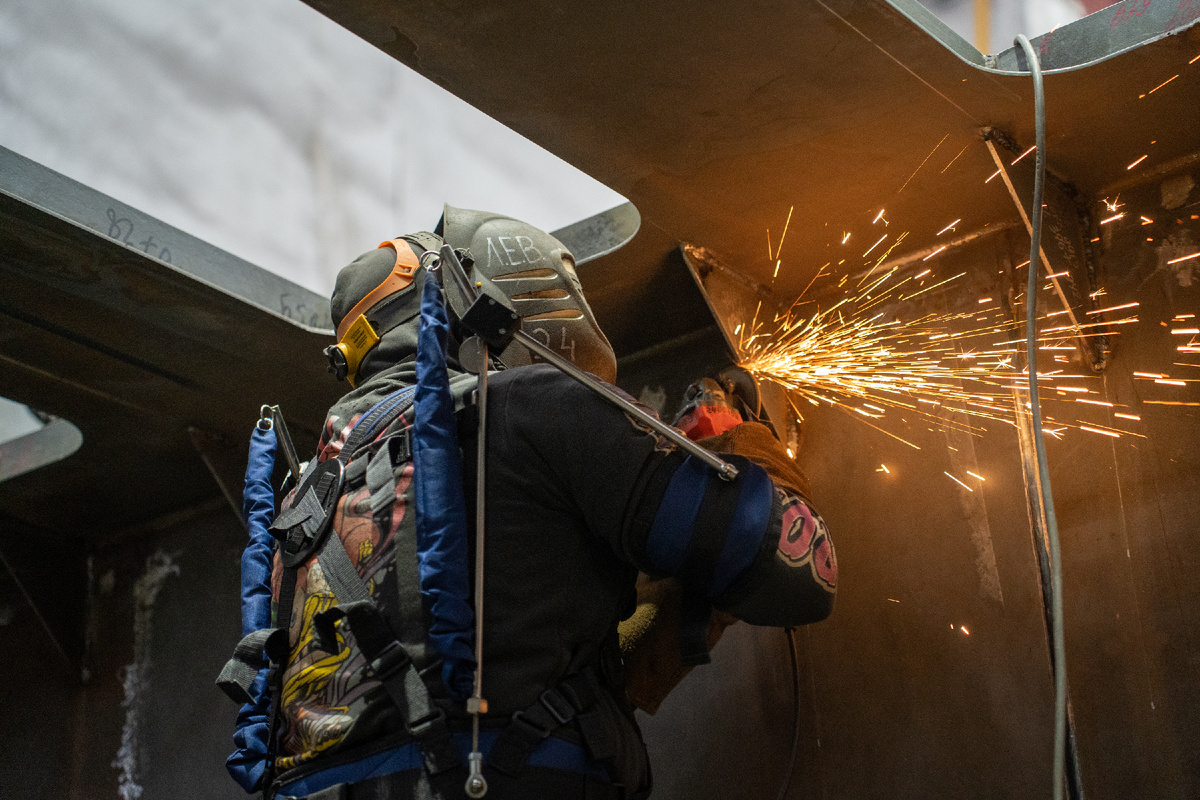 她说:目前,我们正在测试三种型号("轻手"、"基础"和"力量"),每种型号都旨在帮助解决特定的生产难题。第一款"轻手"型号,专为在不适姿势下执行操作而设计。这在分段内部进行焊道清理时尤为重要。该外骨骼能将负荷减少高达30%,从而降低工人的疲劳感,减少被迫休息的频率。