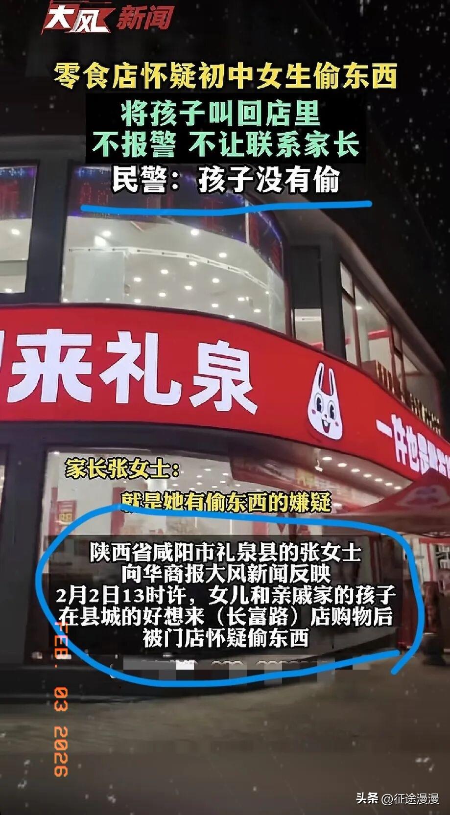 2月2日,陕西礼泉县,一初中女生被诬陷偷东西,事后商家轻飘飘的一句:“这只是个误会”,只想道个歉了事。 这哪是误会,分明是店大欺客。两个14岁的初中生,买完东西刚走出十几米,就被“好想来”零食店员叫回去,硬说她们偷了东西。 理由更离谱,是总部的AI监控系统提示“可疑”。这系统也是个二愣子,人家女孩碰了下货架又摸了摸包,它就判定是偷窃,也不管人家是不是在整理东西。 最气人的是店家的处理方式。把两个孩子扣在店里站了二十多分钟,不让人打电话,也不让家长来。其中一个孩子身体不舒服,想给妈妈打个电话,直接被店员制止。 这操作简直比“土皇帝”还霸道,完全没把法律放在眼里。最后逼得孩子只能自己把书包翻个底朝天,一件件拿出来证明清白。 家长张女士后来去看了监控,视频里明明白白显示,孩子根本没把东西放进包里。这下好了,误会解除了,店家却只想用一句轻飘飘的“误会”揭过去,连个正式的道歉都没有。 更骚的操作是,家长去要个说法,店家反倒先报警了,这真是恶人先告状。 警方都说了,孩子没偷东西。这二十多分钟对两个青春期的孩子来说,简直是社死现场。回家后孩子崩溃大哭四个小时,甚至说出“想跳楼”这种绝望的话。 这心理创伤,一句“误会”能治好吗?商家为了防损,连基本的人权都不要了,这“黑红”营销也太缺德了。现在就看警方怎么处理,这种店不给个说法,以后谁还敢去? 各位读者你们怎么看?欢迎在评论区讨论。