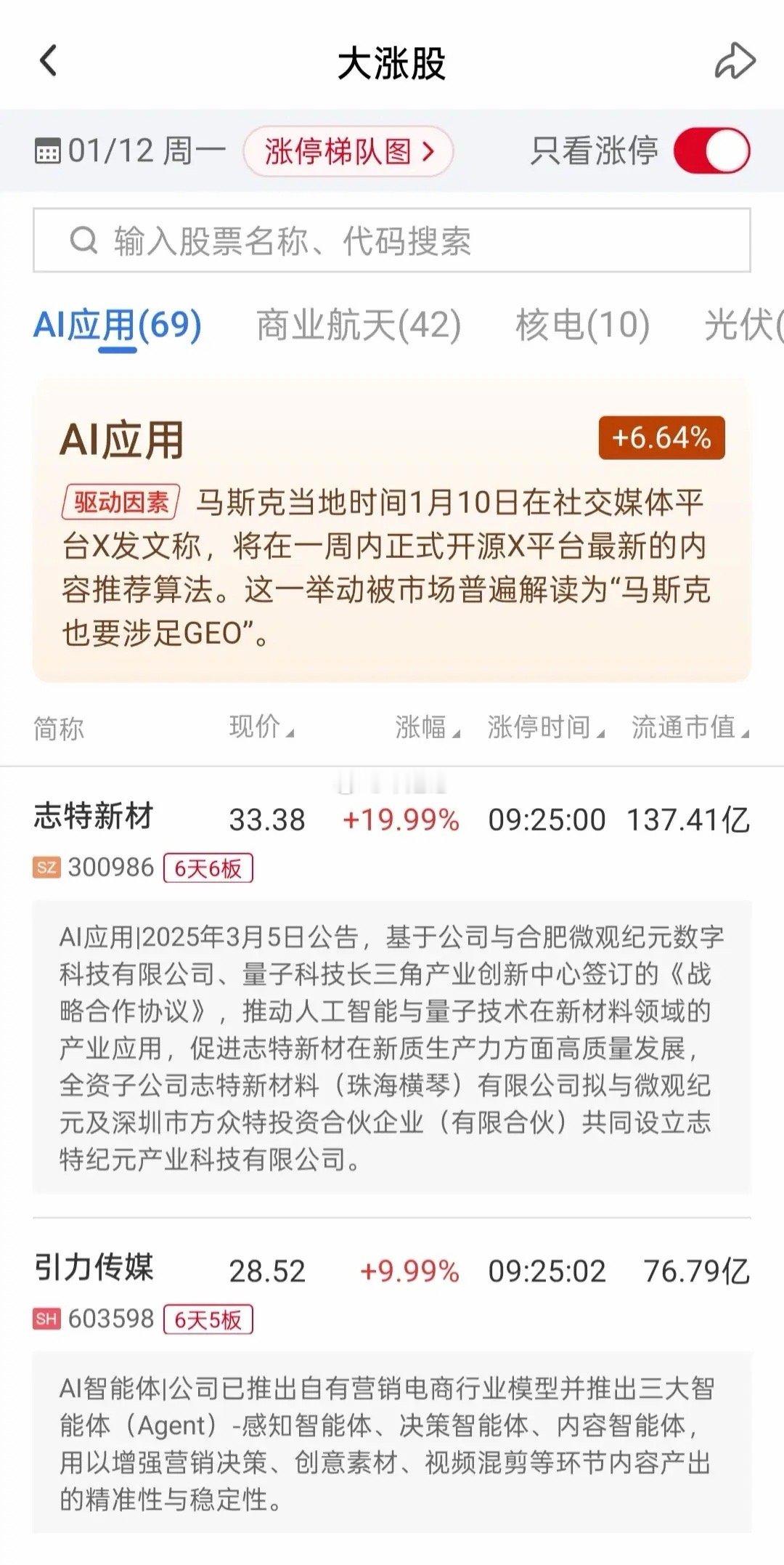 比如2026年1月12日,商业航天板块中涨停股票数量高达42只,是启动以来涨停数量最多的一天。次日,板块出现退潮,板块内众多股票纷纷跌停。