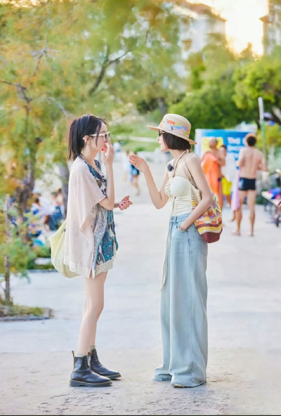 张天爱跟素人合影,胯真的好宽,大宅院似的