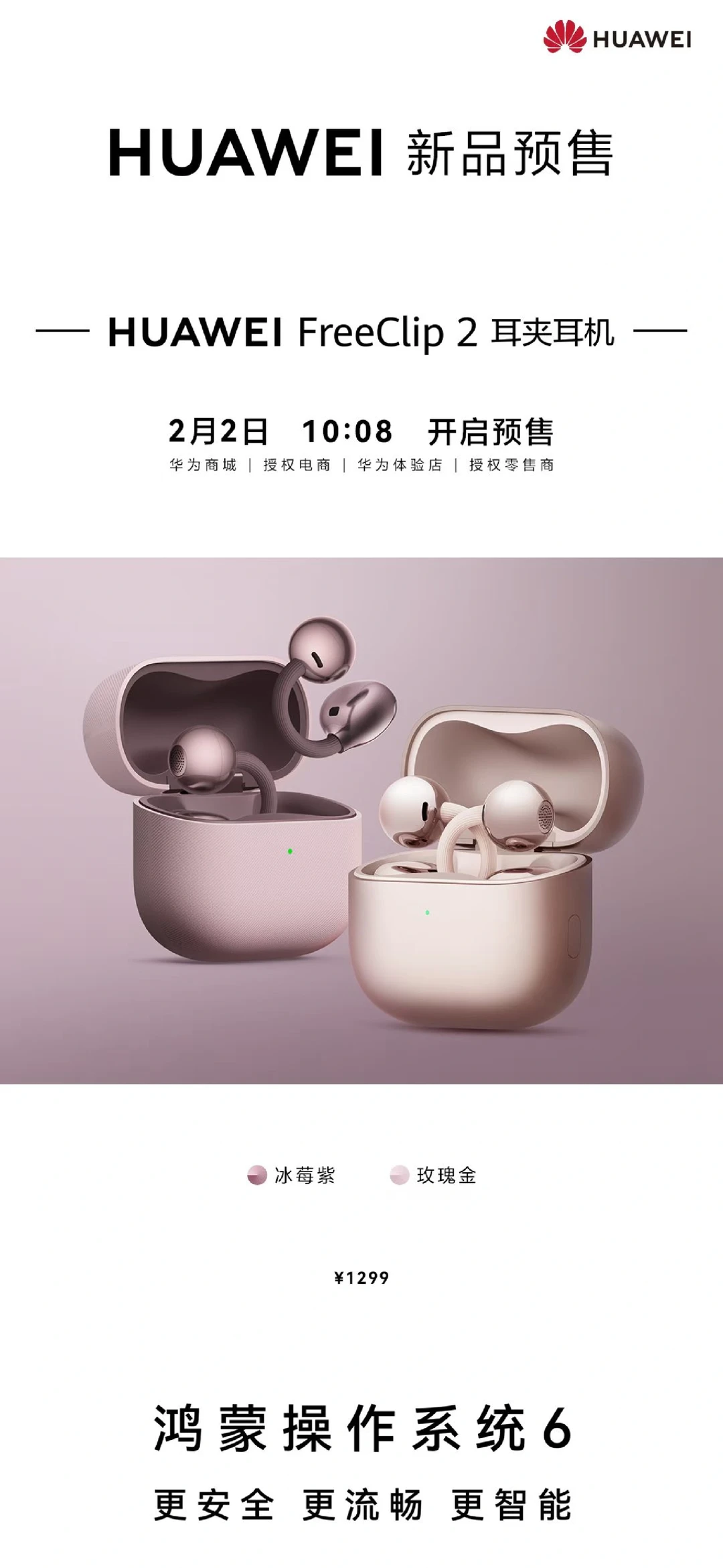 华为又悄悄干大事! 耳夹耳机新出了冰莓紫和玫瑰金两款配色 这颜色太有质感了[超喜欢R] 2026真的是要紫气东来啊 今天预售,我先去冲了🏄