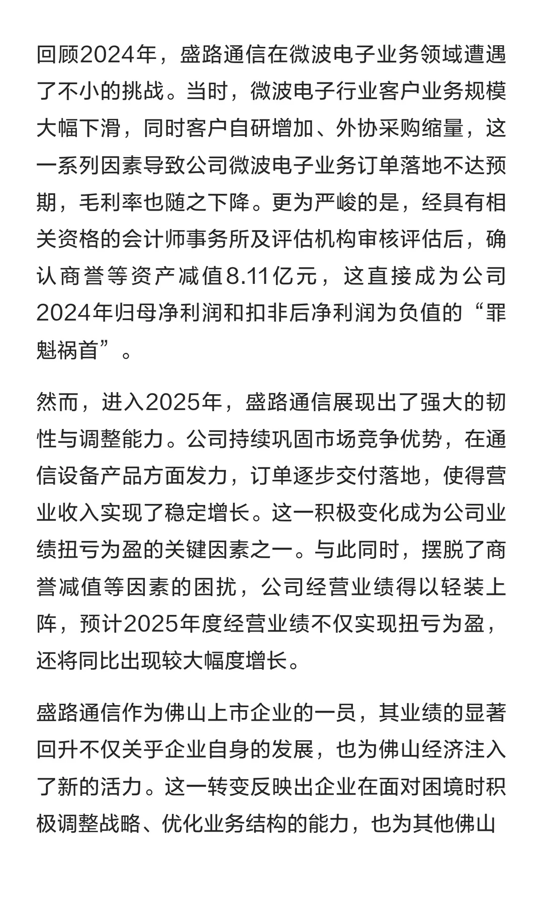 佛山一上市企业预计2025年净利润超5800万元
