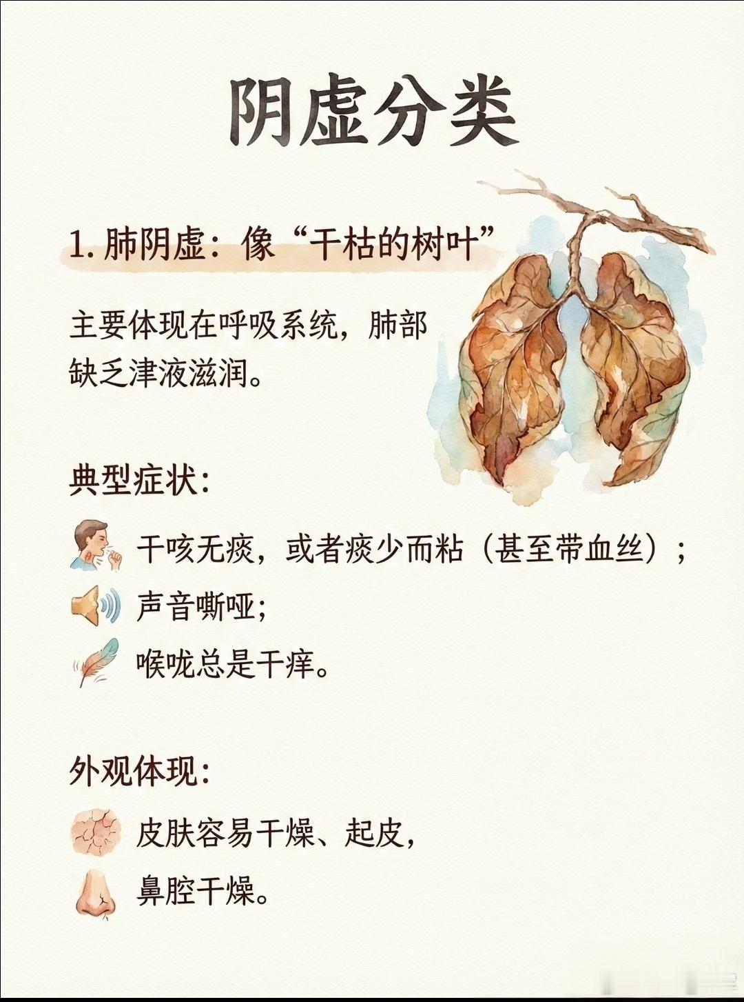 常见证型包括肺阴虚、心阴虚、胃阴虚、肝阴虚、肾阴虚等,不同脏腑的阴虚症状各有侧重。例如肾阴虚多伴有腰膝酸软、遗精早泄;肺阴虚则多见干咳少痰、声音嘶哑。