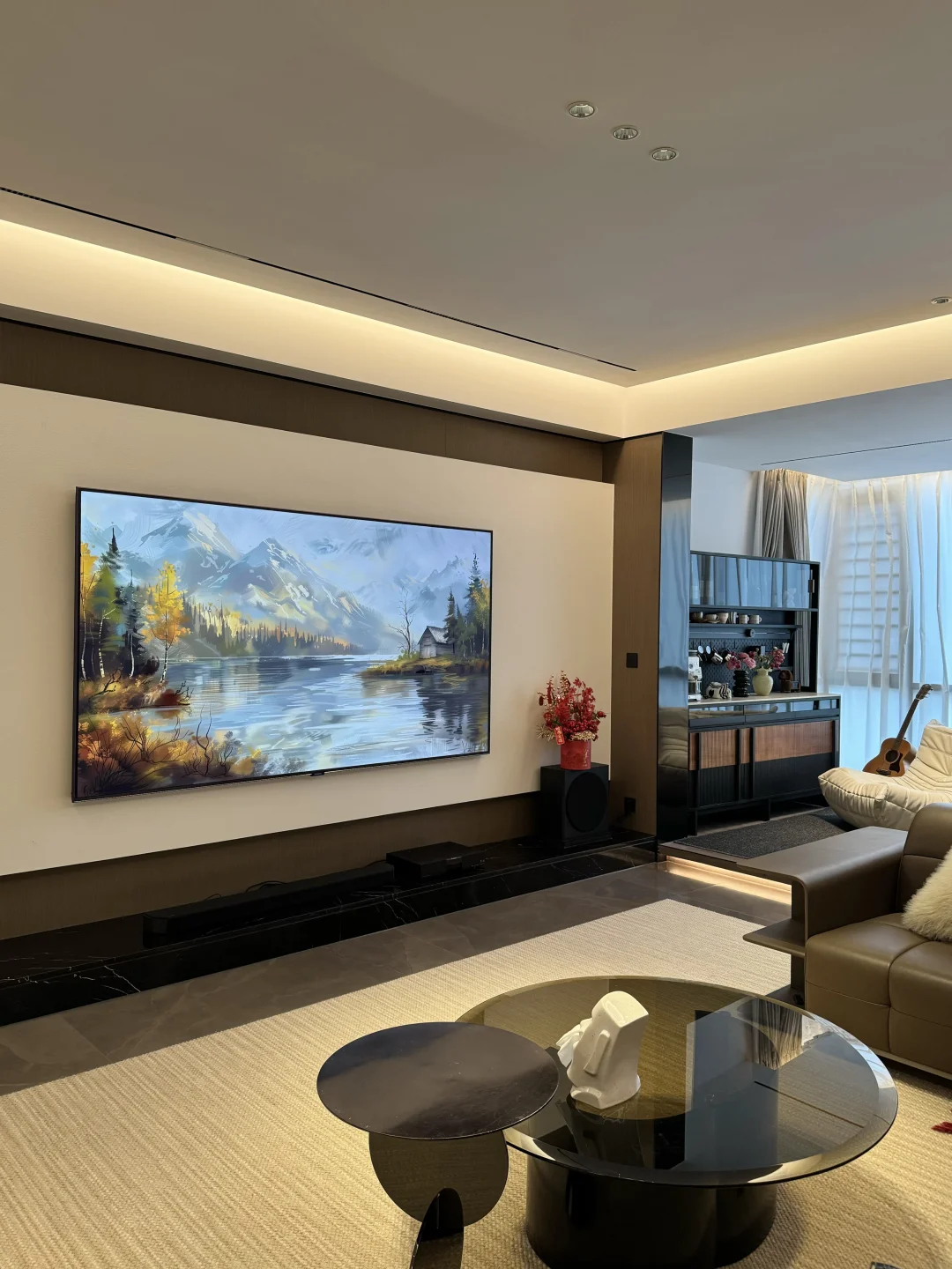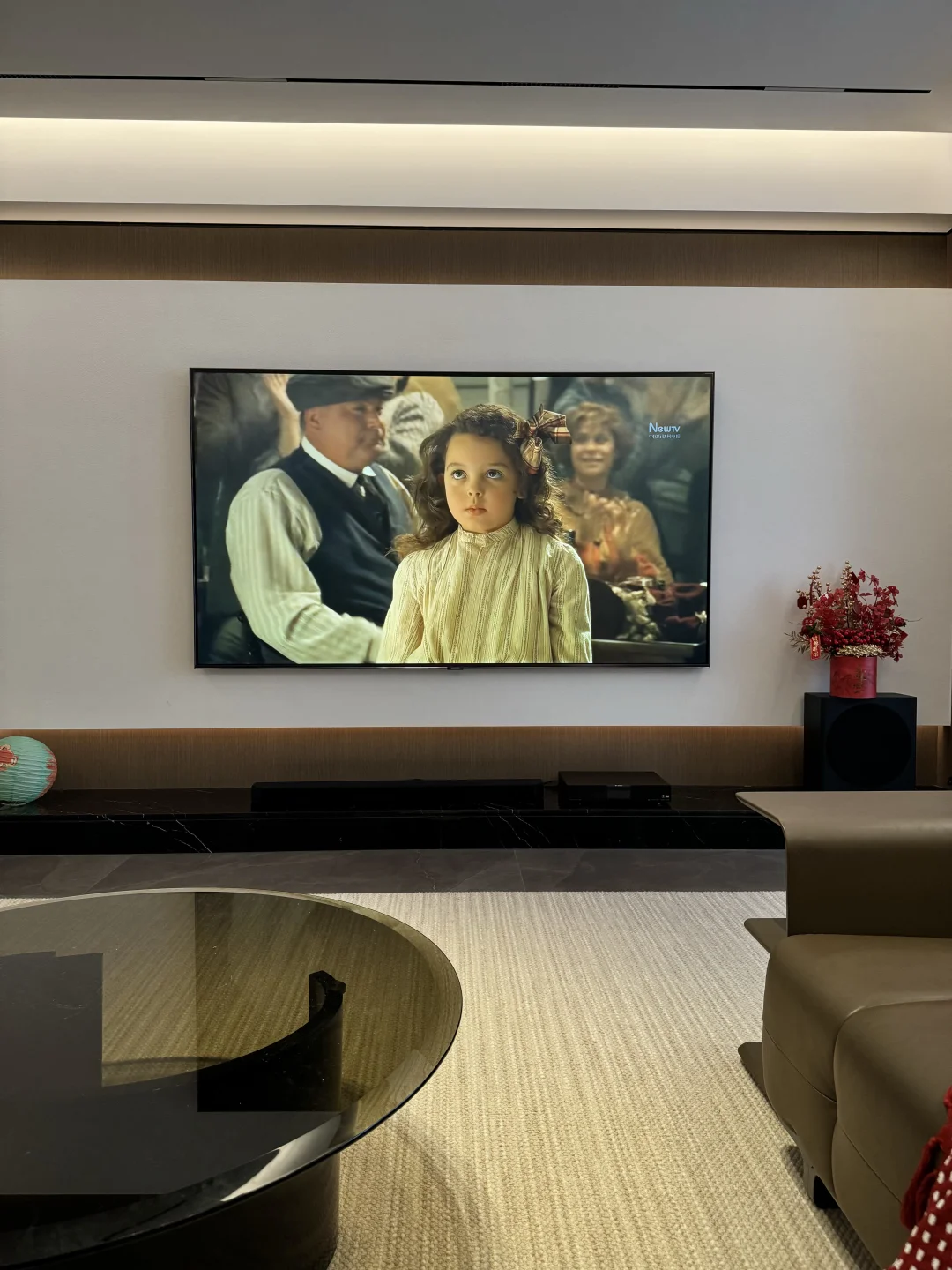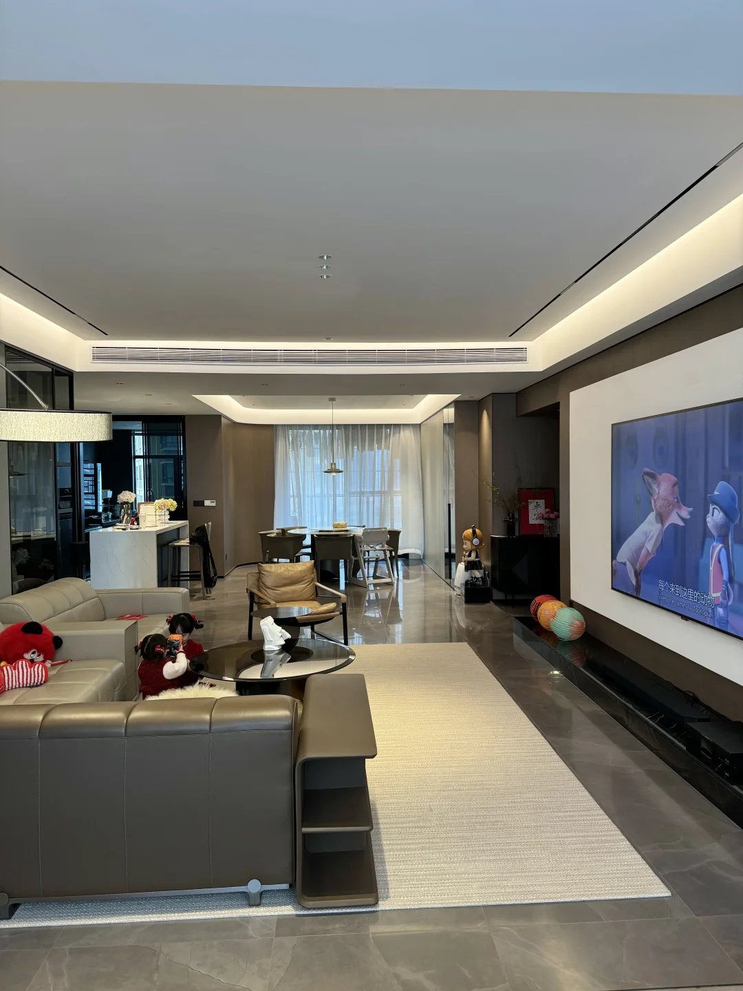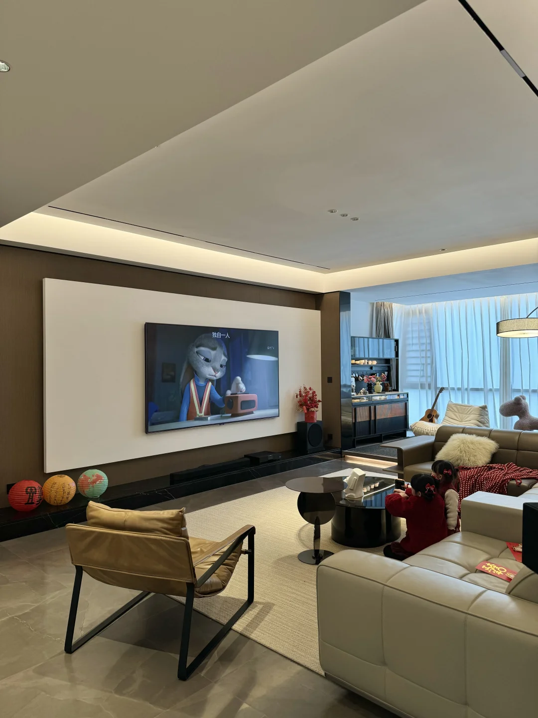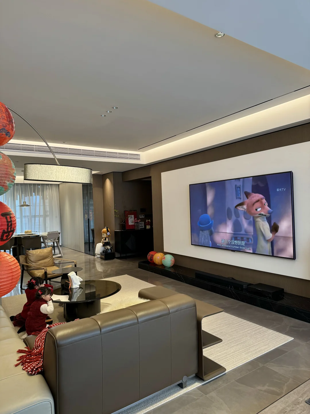 坐标在广东四线小城市,我们共同努力好几年才有现在的Dream house 🏠 建面249平,套内215平,装修风格也是完全按自己喜好,装的意式极简风格。 有个同频的老公,还有两个可爱的儿女👨‍👩‍👧‍👧 慢慢过上向往的生活,安稳幸福,时常觉得这是何其幸运。 今年即将在这个家度过第三个春节了,假期只想安心舒适的宅在家里~ 客厅是我们最有氛围感的地方,电视成了最重要的C位,很期待春节时家人围坐一起看看春晚和贺岁电影…… 不得不说家里安排的这部98英寸巨幕电视的观影体验真的非常不错😝 98英寸电视大得刚刚好,细窄的边框看着非常极简又大气,窗帘一拉,氛围灯一开!大屏幕带来的沉浸式观影感比在电影院还自在舒服😌 选它也是因为看重电视用的是TCL华星的面板,尖端的显示技术下画面明亮但不刺眼,色彩鲜艳还原,久看眼睛也不觉得累,女儿的寒假已经开启啦,让她在家进行适当的时间看动画片我也是很放心的~ 最近也重温了好几部经典电影,TCL华星高阶HVA屏搭配MiniLED技术,追求画质的家属也十分满意,色彩过渡自然,连人物的毛孔都清晰可见👍 原本担心大屏幕入户问题,想不到刚好可以电梯入户,而且送装服务也很让人很省心,下单第二天就送达了! 新年焕新家,选对一件家电真的可以大大提升居家的幸福感✨ 如果你家也正在装修或者想升级客厅的观感,现在正是年货节入手最划算的好时机! 客厅装修灵感库大平层不是豪宅但特别好宅电视背景墙98黄金巨幕日98尺寸刚刚好98入户没烦恼家有3米看98APEX臻图团圆必备家电电视推荐新年布置年味就是家的味道过年氛围感提前拉满家的氛围感意式极简我在搞装修换个角度看我家家居美学家庭影院