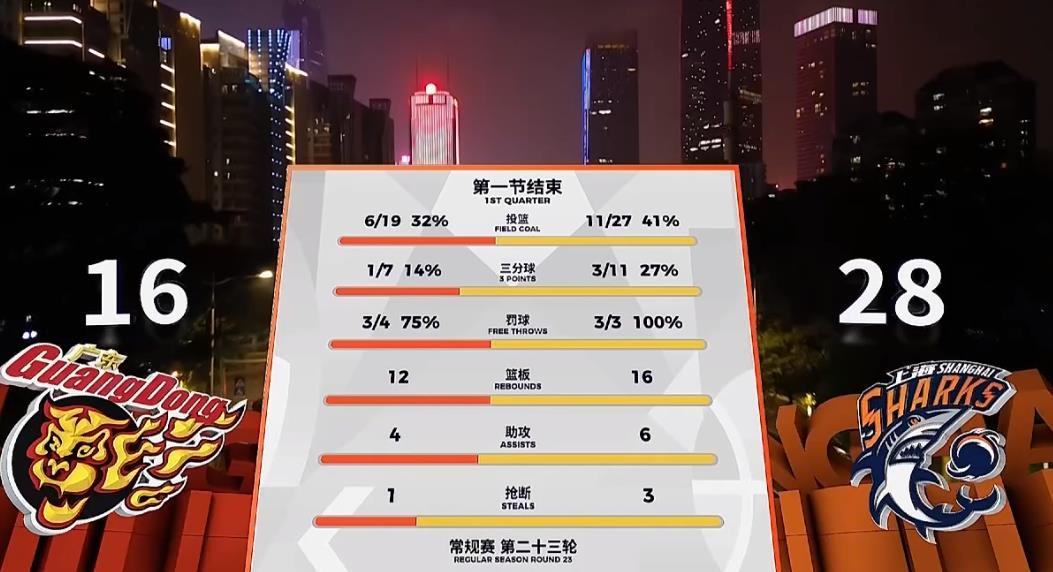 广东队现在真的打不过上海队,第一节就16:28落后12分,上海队的内线优势太大了,第一节怀特赛德得到7分,洛夫顿得到7分,王哲林得到6分,三个内线球员第一节一共得到20分,而广东队内线只有萨林杰得到3分,王少杰和王洪泽都是0分,广东队这内线上来就被上海队打爆了。 而第一节广东队外线手感也不好,三分球7投1中,而上海队三分球是11投3中,其中张镇麟投中两个三分球。 可以说第一节在各项数据上上海队全面领先广东队,广东队现在和上海队的差距太大了,根本没有和上海队掰手腕的实力。估计现在杜锋和朱芳雨心里面拔凉拔凉的,这赛季老板花了这么多钱,还是没有成绩,他俩可是最大的责任人啊!