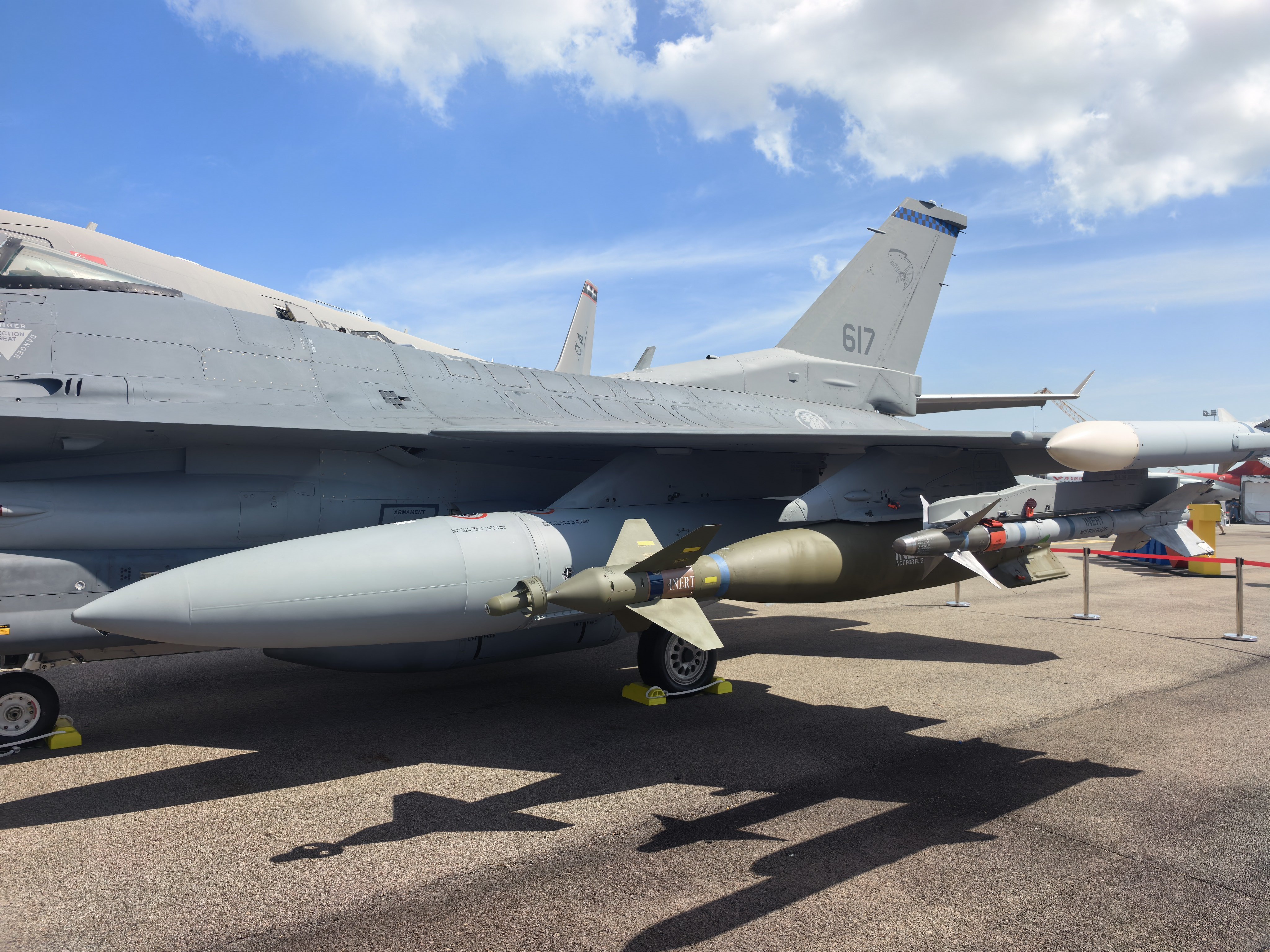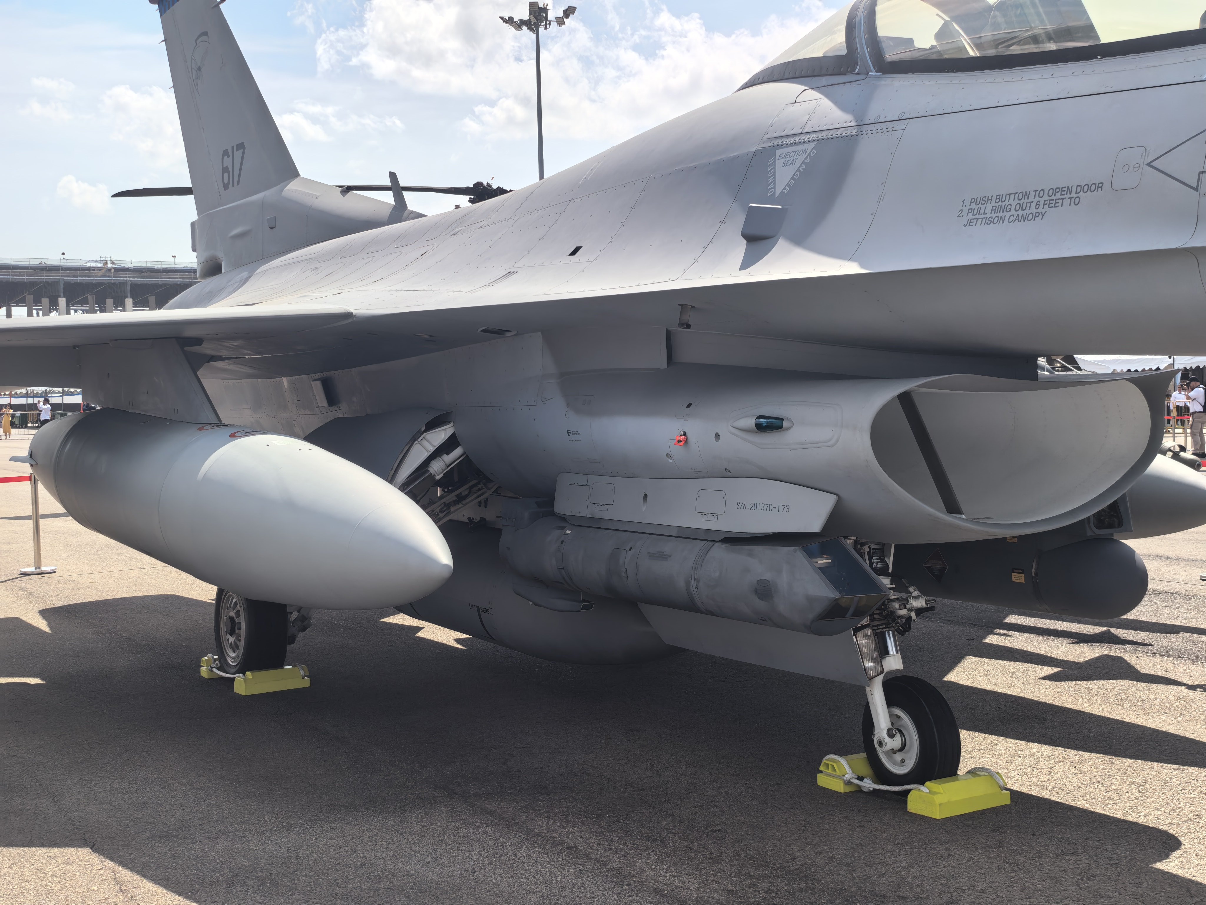 新加坡航展上的F-16,我用华为开了10倍镜,趴地上拍的,不过感觉这些照片没啥价值,因为F-16过于落伍了。