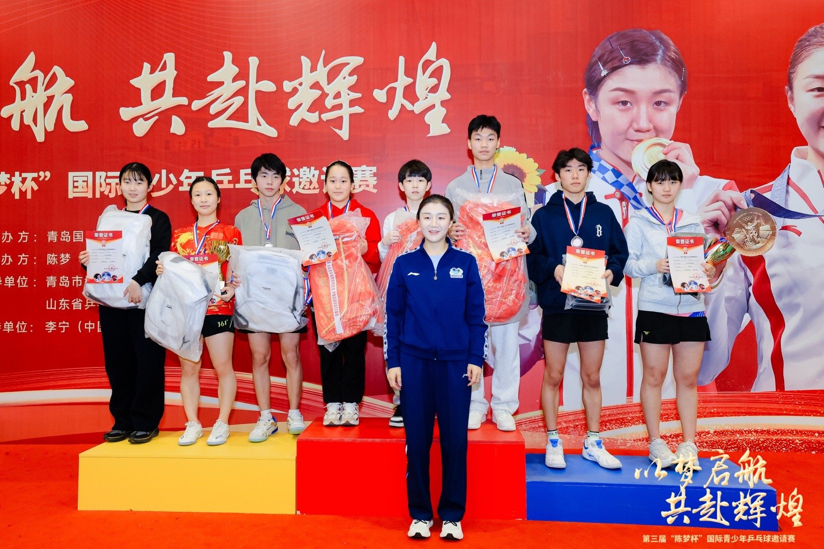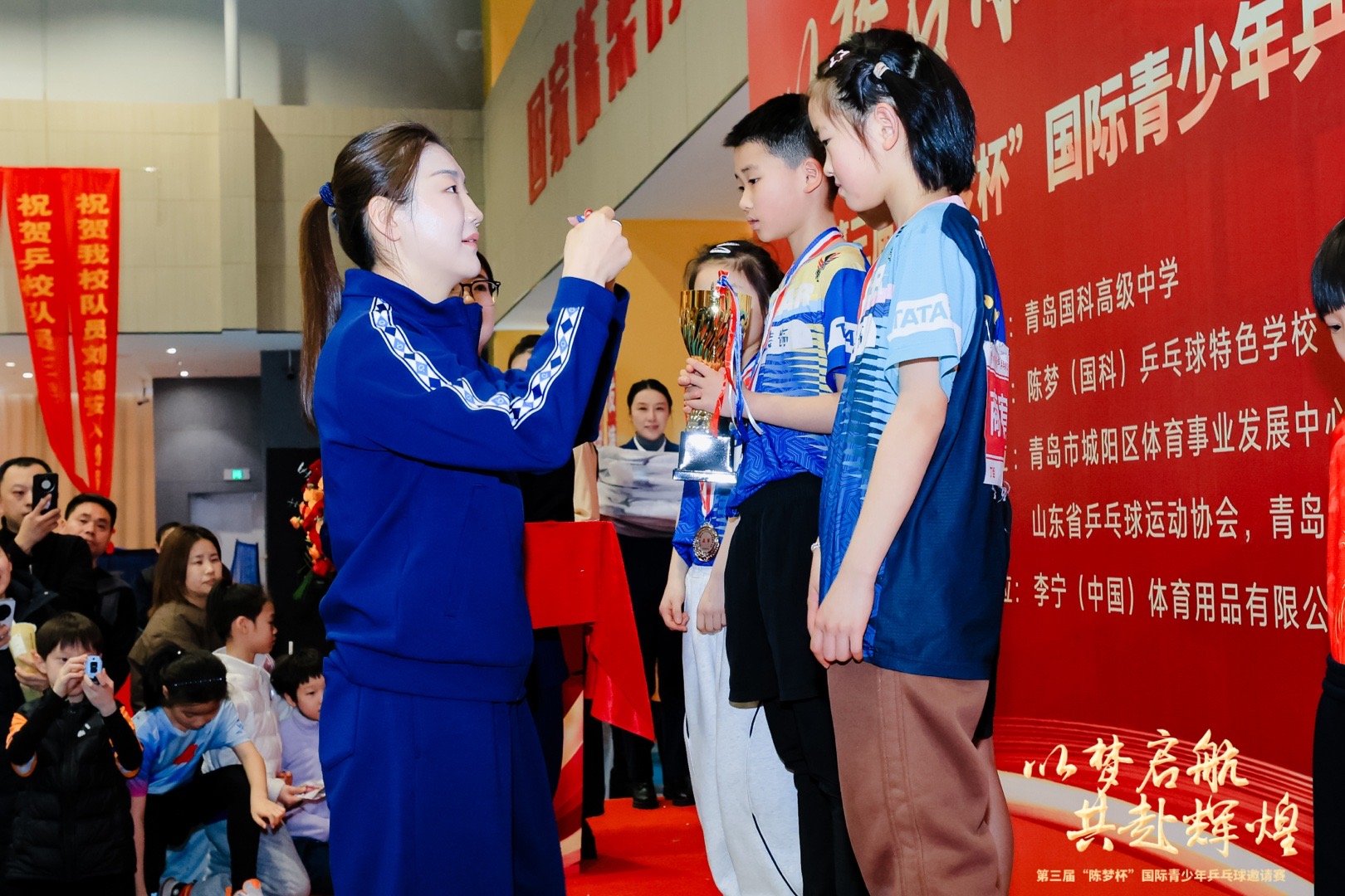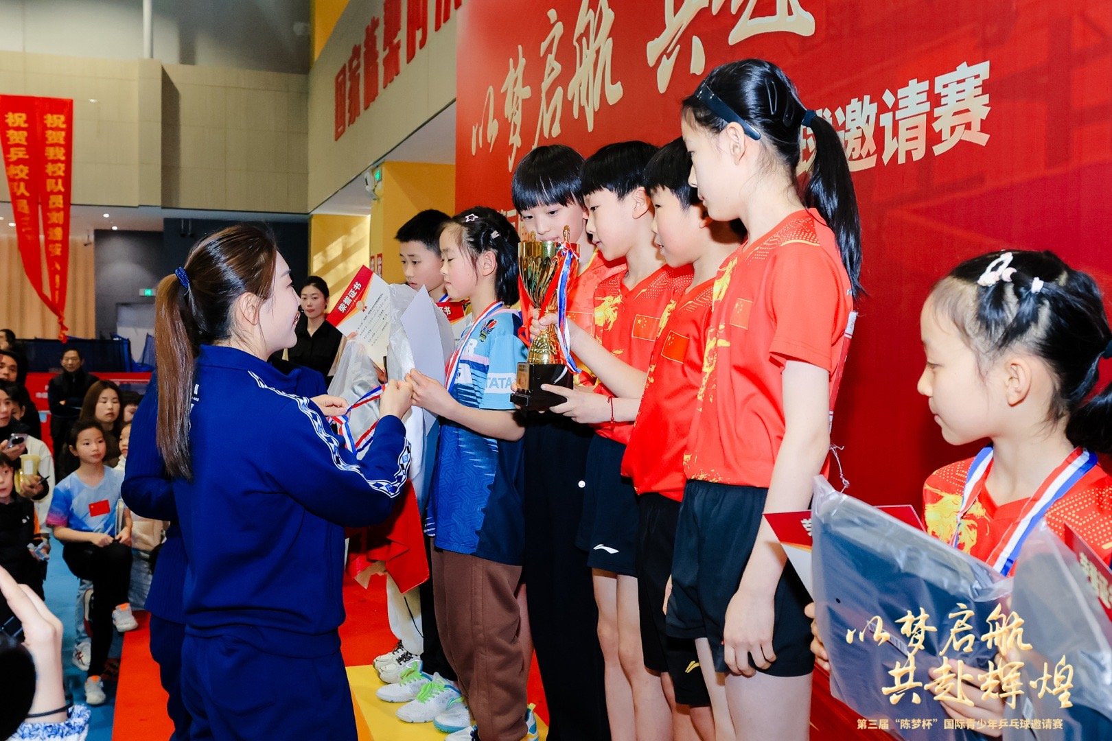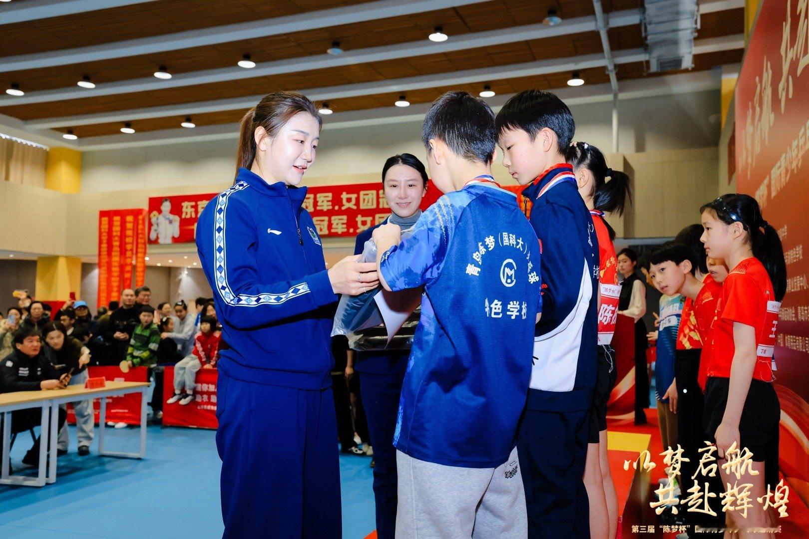 🍓卫冕奥运冠军陈梦:陈校长为第三届“陈梦杯”团体冠 亚 季军选手颁奖 合影留念🏆