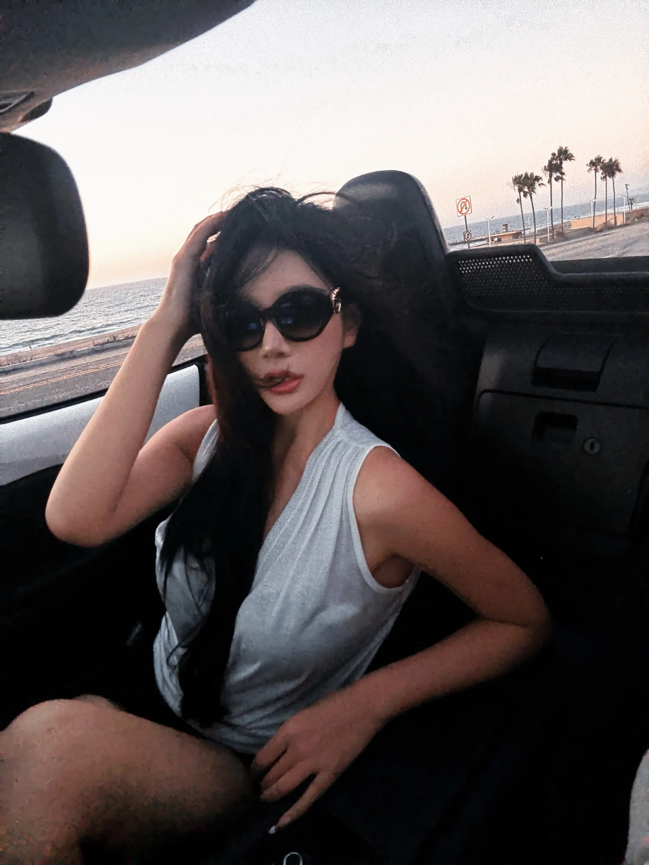 白衬衫的衣料在车内的暖光里泛着柔和的光泽,她静靠在车窗旁,目光追着雨珠划过玻璃的