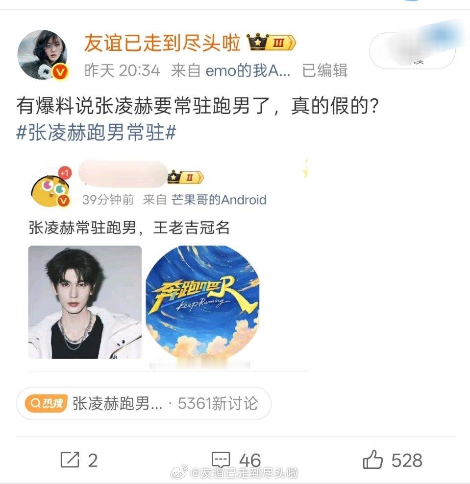 有爆料说张凌赫要常驻跑男了,真的假的?