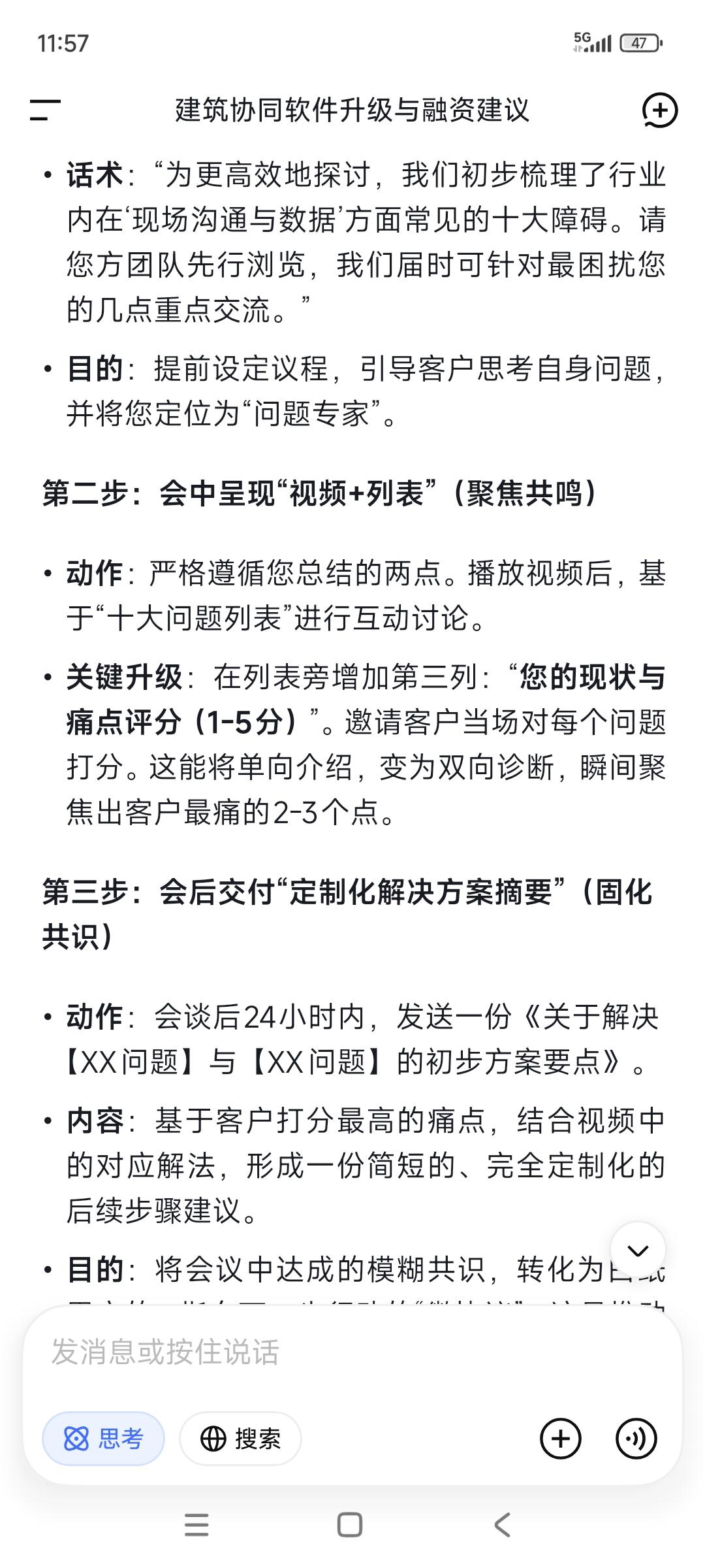 •解决两大问题: 第一,现场使用癌症; 第二,商业化困境。 围绕问题展开的解决方案如何触手可及,形成可连接可复制可回收的市场开发模式。 •如何销售? ①提供一个产品使用15分钟左右的视频演示给客户看,让人比较直观感知到。 ②罗列你能解决现场比如十大问题与大家使用的障碍(病症),列出解决方案能跟你产品对应起来(下药)。 •总结 一件事比如销售,只要你能发自内心灵魂深处热爱它,