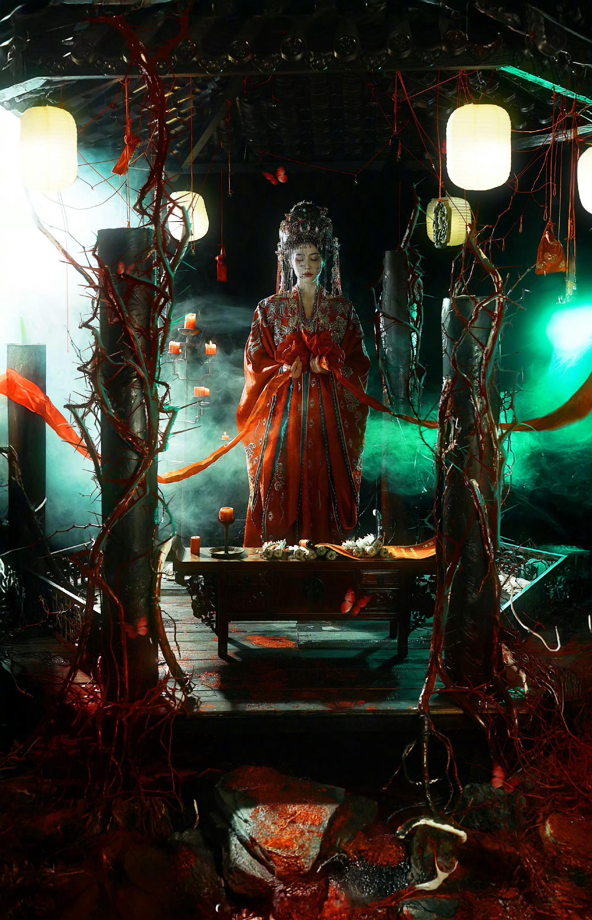 白鹿《唐宫奇案之青雾风鸣》鬼新娘妆写真来啦,又美又吓人有木有?白鹿新剧阴湿女鬼
