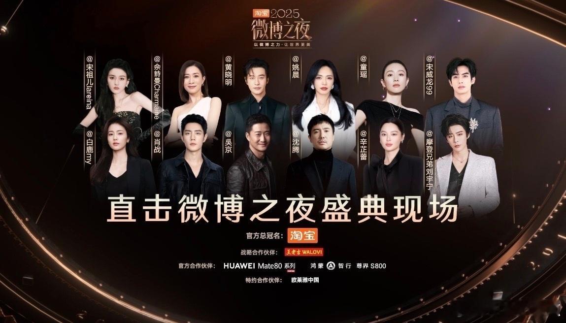 微博之夜盛典预约封面来了前排:吴京>沈腾>肖战>辛芷蕾>白鹿>刘宇宁后排:黄晓明>姚晨>佘诗曼>童瑶>宋祖儿>宋威龙
