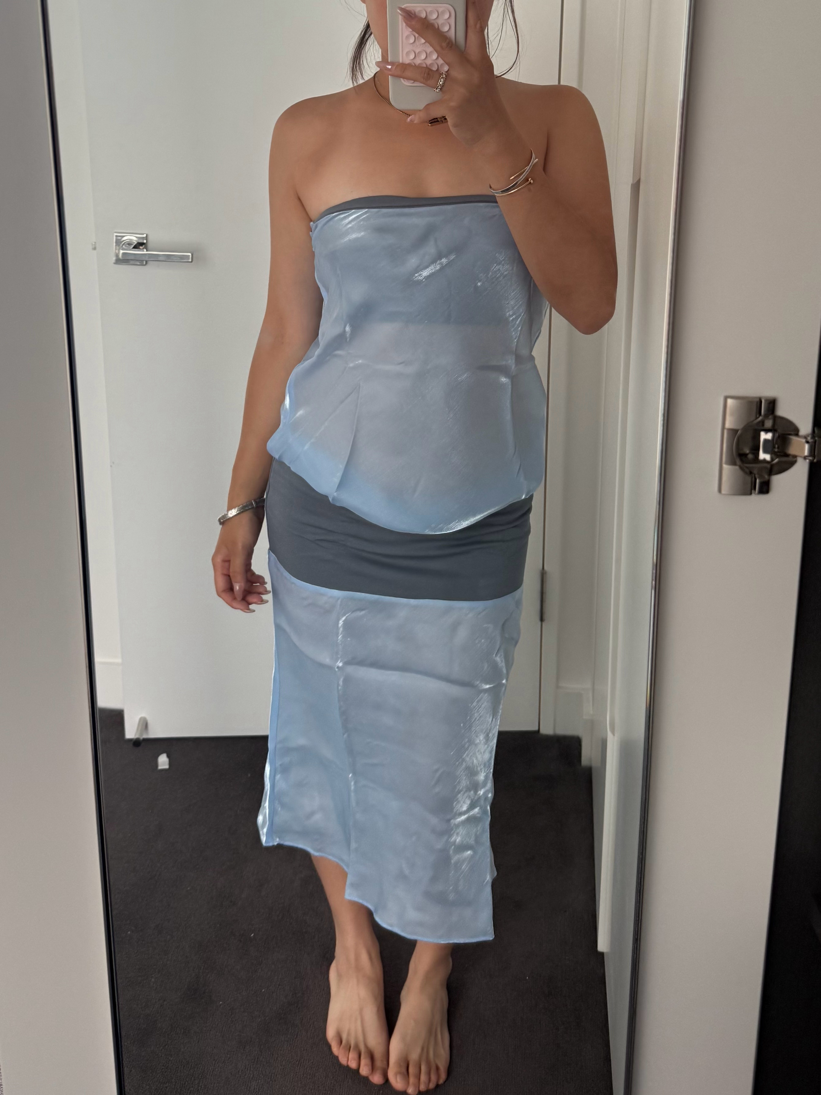 最近的爱好就是看ins有喜欢的直接去线下店试穿终于知道线下店的魅力了店员情绪价值给的太足每天都有点自我陶醉这个蓝色裙子我刷到就在想这是什么面料Silky又亮晶晶✨实物更美~