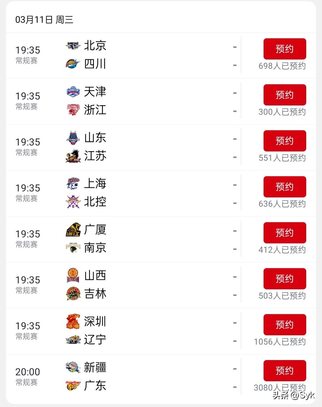 CBA常规赛今日八场比赛预测:浙江、新疆、上海、广厦、北京、山东、山西赢面较大,深圳辽宁难分难解。 2026年3月11日,CBA常规赛迎来新一轮激战,八场比赛将在晚间19:35(新疆场次为20:00)同步打响,广厦、上海、广东、深圳、辽宁等积分榜前列球队悉数登场,为球迷献上精彩对决。 北京男篮(第7)vs 四川男篮(第20) 北京男篮以铁血防守体系立足联盟,能有效限制对手进攻火力,阵容深度与战术执行力稳居联赛中上游。四川男篮遭遇23连败,攻防两端全面崩盘,阵容实力与竞技状态均处于联盟末流,客场作战毫无抵抗力。 预测:北京胜 天津男篮(第16)vs 浙江男篮(第8) 浙江男篮上场比赛赢球,攻防节奏明快,外线火力与内线攻坚能力均衡,整体状态稳步回升。天津男篮排名下游,攻防表现疲软,面对浙江男篮的高强度攻防,难以组织起有效反击,客场作战劣势明显。 预测:浙江胜 山东男篮(第6)vs 江苏男篮(第19) 山东男篮虽少赛一场,但胜率稳居前列,攻防体系成熟,内线对抗与外线投射兼具优势。江苏男篮近期遭遇2连败,攻防两端漏洞百出,客场作战难以抵挡山东男篮的压制,阵容韧性不足。 预测:山东胜 上海男篮(第2)vs 北控男篮(第11) 上海男篮稳居积分榜次席,豪取4连胜,阵容豪华且战术体系完善,攻防两端统治力拉满。北控男篮近期遭遇1连败,虽有里勒与陈国豪的组合支撑,但整体实力与上海男篮差距明显,客场作战难撼强敌。 预测:上海胜 广厦男篮(第1)vs 南京男篮(第18) 广厦男篮位列积分榜榜首,仅遭遇1连败,阵容底蕴深厚,攻防转换效率与关键球处理能力联盟顶尖。南京男篮排名下游,近期状态低迷,客场作战面对广厦男篮的强势攻势,难以形成有效抵抗。 预测:广厦胜 山西男篮(第10)vs 吉林男篮(第14) 山西男篮近期斩获2连胜,状态持续回暖,攻防体系愈发均衡,外线火力具备较强压制力。吉林男篮仅取得1连胜,攻防表现起伏较大,客场作战难以适应山西男篮的比赛节奏,阵容竞争力不足。 预测:山西胜 深圳男篮(第5)vs 辽宁男篮(第12) 辽宁男篮作为卫冕冠军,阵容底蕴深厚,近期斩获2连胜,状态稳步回升,后卫线组合与内线攻坚能力依旧强势。深圳男篮虽排名上游,但上场输球,攻防状态有所波动,主场作战有可能会遗憾输球。 预测:辽宁胜 新疆男篮(第15)vs 广东男篮(第3) 新疆男篮与广东男篮的对决是本轮焦点之战,广东男篮虽遭遇2连败,但依旧稳居积分榜第三,阵容实力与战术底蕴毋庸置疑。新疆男篮近期状态低迷,仅取得1连败,面对广东男篮的豪华阵容,主场作战也难以占据优势。 预测:广东胜
