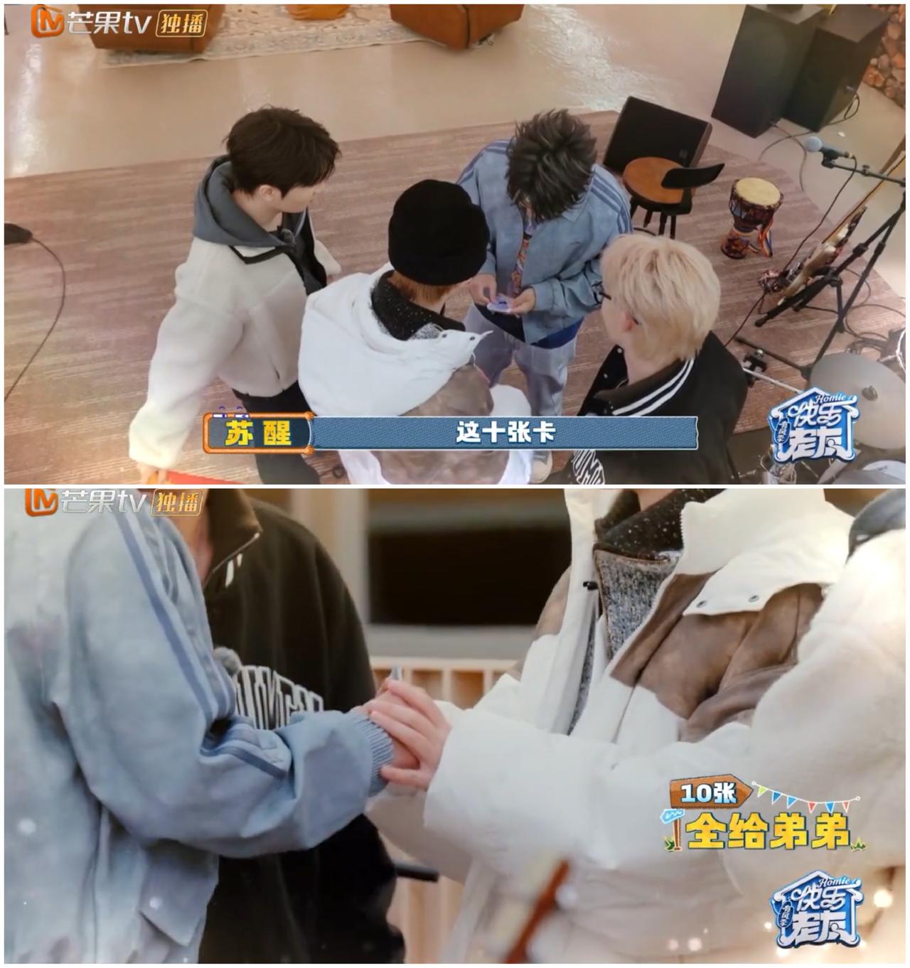 想不到苏醒也有被“忽悠”的时候, 李昊他们一顿输出, 苏醒就这样“上当”了。 李昊他们兄弟三人来到丽江 做客苏醒的节目。 李昊他们正在为没有房间睡觉 而苦恼。 苏醒手上有“房产”, 想要“出租”给他们。 于是苏醒带李昊他们去看房, 结果这个时候, 局面反转了。 李昊他们哭“穷”, 声称他们三个人只有三张卡, 其实他们一共有十张卡。 然后开启夸夸模式, 苏醒被夸爽了, 就答应让他们免费住了, 不收房租。 这不是最炸裂的, 最炸裂的还在后面。 苏醒后来又回到房间, 把自己昨天赚到的十张卡 全部给了李昊他们。 这下苏醒真的是“偷鸡不成蚀把米”了, 不光没有赚到“房租”, 还把自己的卡赔进去了。 看到这一幕, 就知道张远这些兄弟处于低谷时, 苏醒真的会像帮忙李昊那样 无偿帮助的, 这个习惯似乎已经刻进基因里那样了。 哎呀, 苏醒那么聪明, 哪里那么容易被李昊他们一两句“忽悠”到呢? 上次王霏霏就被苏醒“忽悠”得一愣一愣的。 在“忽悠”方面, 李昊他们跟苏醒完全不是一个级别的。 这样看来, 苏醒就纯粹想要帮助李昊他们而已, 就假装自己被“忽悠”了。 这下更多网友想要做苏醒的朋友了吧。