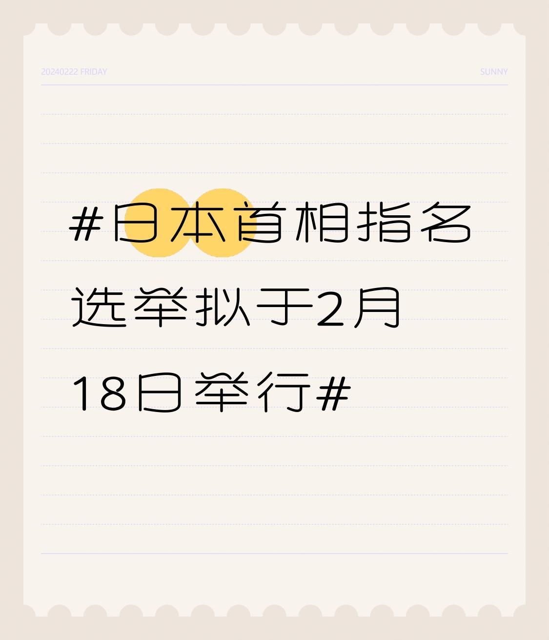 日本首相指名选举拟于2月18日举行 日本首相指名选举拟于2月18日举行,这事儿又要在日本政坛掀起一阵波澜了。每次选举都像是一场大戏,各党派候选人争得那叫一个激烈。 就说之前的选举,候选人各种承诺满天飞,可真正兑现的又有多少呢?民众眼巴巴盼着生活能变好,结果往往不尽如人意。这次选举不知道又会冒出什么新花样,是新的政策主张,还是老调重弹?不管怎样,最终结果都会影响日本未来走向,也不知道这次选出的首相能不能给日本带来点新气象,咱就拭目以待吧。