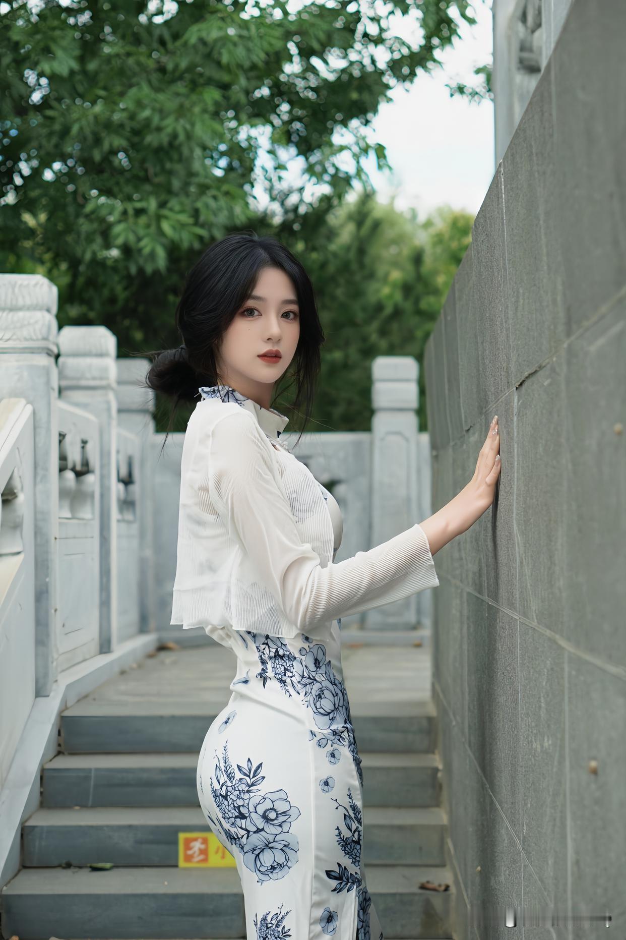 青花瓷纹在石阶上盛开,与旧时光静静对望的她,格外耀眼 幸福感强的女人 顶级魅力女人