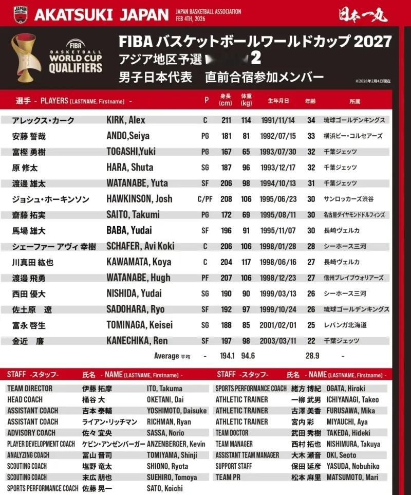 稍微研究了一下日本队大名单,平均身高194cm,应该跟我们差不太多,3条线他们都有高个,也就是没有220的大个子,但是对对阵形势来讲,没有反而对他们是优势。另外,日本队体重也不输我们,我们外线除了贺希宁,赵睿都是体重比较轻的后卫,锋线体重基本都在100-110kg左右,内线稍微有点优势,但是能不能怼过他们也不好说。