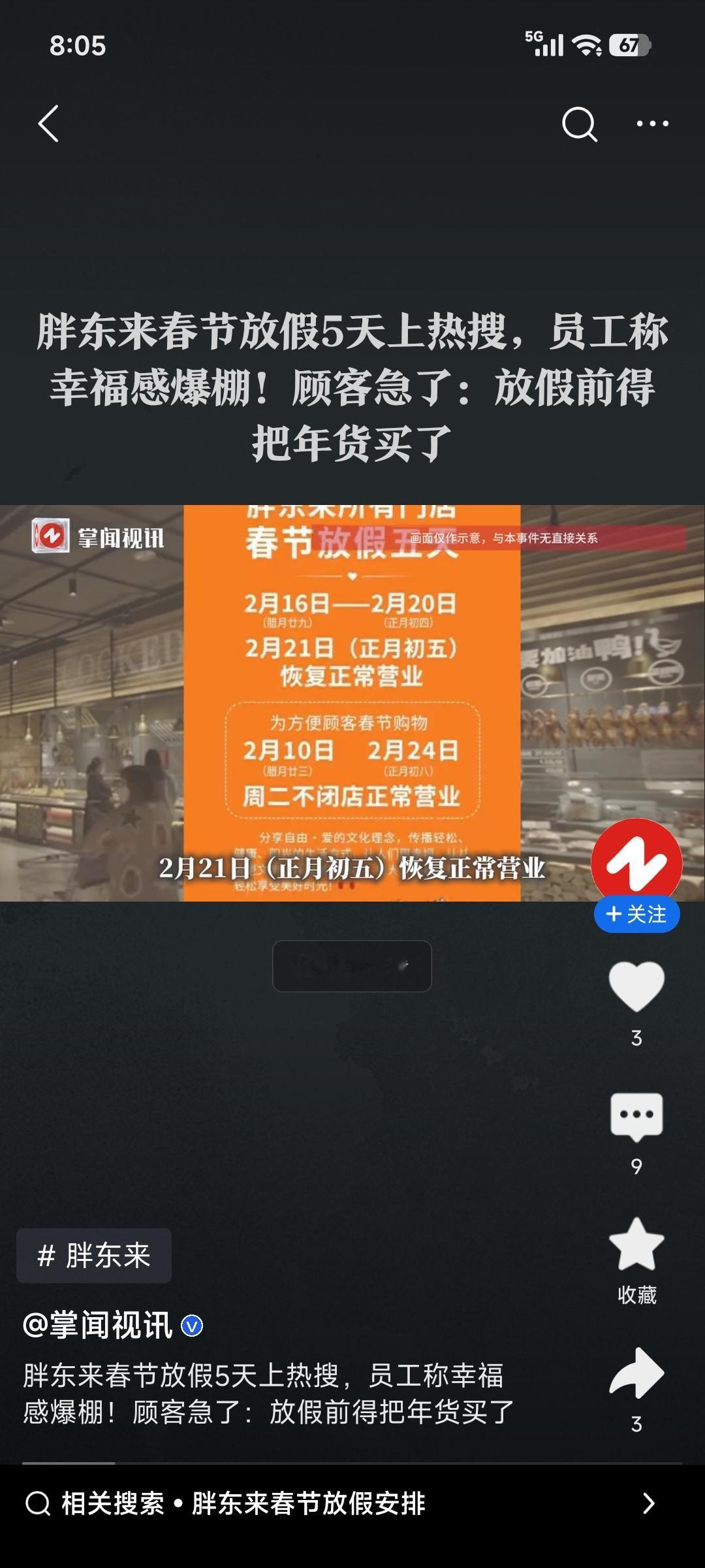 胖东来这操作真是太圈粉了!春节放假5天,员工高兴地反问记者“你见过哪个超市过年放假”,这反差感直接拉满。别家超市过年忙得晕头转向,胖东来员工却能开开心心放假。 再看之前尝面女员工事件,胖东来处理得相当漂亮。从开除到转岗,把危机变成了正面宣传。虽然女员工操作不规范引发网友不满,但胖东来迅速反应,先重罚平息众怒,后转岗体现对员工的关怀,不愧是懂谋略、懂管理的良心企业,这波操作值得同行学习!