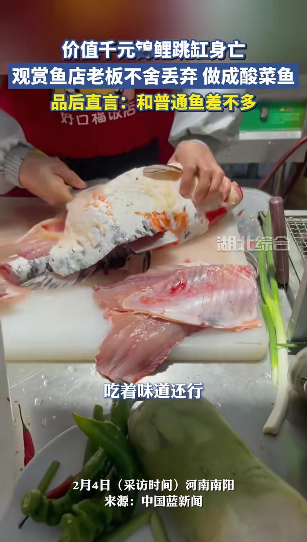 最近有条新闻挺有意思,一家小餐馆老板养的千元锦鲤,夜里从鱼缸跳出来摔死了,伤心归伤心,老板最后居然把这条养了好几年的鱼做成了酸菜鱼。据说这条锦鲤是老板花近一千块买的,平时当吉祥物似的疼着,每天打烊都要特意喂食、检查鱼缸,结果就因为鱼缸盖子没盖严,这鱼硬是“越狱”成功,却没能活下来。老板说蹲在地上看了好久,心里又疼又自责,可最后还是决定按老家的规矩来,物尽其用,用最熟悉的味道送它最后一程。 其实我特能理解老板的心情,这鱼可不是普通的观赏鱼,陪他熬过了最难的日子,每天看着游来游去的,早就成了心里的一个念想。有人说把有感情的宠物做成菜太奇怪,可换个角度想,这总比随便扔了强吧?咱们普通人对感情的表达,本来就没那么多花里胡哨的讲究,不是所有人都能搞个隆重的安葬仪式,这种带着烟火气的告别,反而更显真诚。老板没把鱼卖钱,就请了几个老顾客一起尝尝,还摆了酒和米饭送别,这哪里是在吃一条鱼,分明是在和老伙计好好说再见。 再说了,“物尽其用”从来都不是丢人的事。现在很多人养宠物,新鲜劲过了或者宠物没了,就随手丢弃,相比之下,这位老板的做法反而透着一股实在。锦鲤本质上和食用鲤鱼是一类,处理干净煮熟了完全没问题,总比让它腐烂变质强得多。有人质疑伦理问题,可伦理这东西本来就没有统一答案,农村里养了好几年的老黄牛,最后做成食物时主人也会难过,但这就是对生命的另一种尊重——不浪费它的存在,记住它曾经带来的陪伴。 还有人说这是浪费千元锦鲤,可钱都花了,鱼也没了,难道哭一场扔了才叫不浪费?老板的眼泪是真的,不舍也是真的,做成酸菜鱼不是不尊重,而是用最接地气的方式留住回忆。生活里的遗憾太多了,我们总在找各种方式纪念逝去的人和事,有人写日记,有人存照片,老板只是选择了最符合他生活的方式而已。而且这事也提醒了养鱼的朋友,鱼缸一定要盖好,别让类似的意外再发生。 说到底,这事儿没有绝对的对与错,核心就是普通人对陪伴的珍惜和对生命的敬畏。你能理解老板含泪做酸菜鱼的做法吗?如果是你的宠物离开了,你会选择怎样的告别方式?欢迎在评论区说说你的看法。千元锦鲤身亡主人含泪做成酸菜鱼 来源:齐鲁晚报