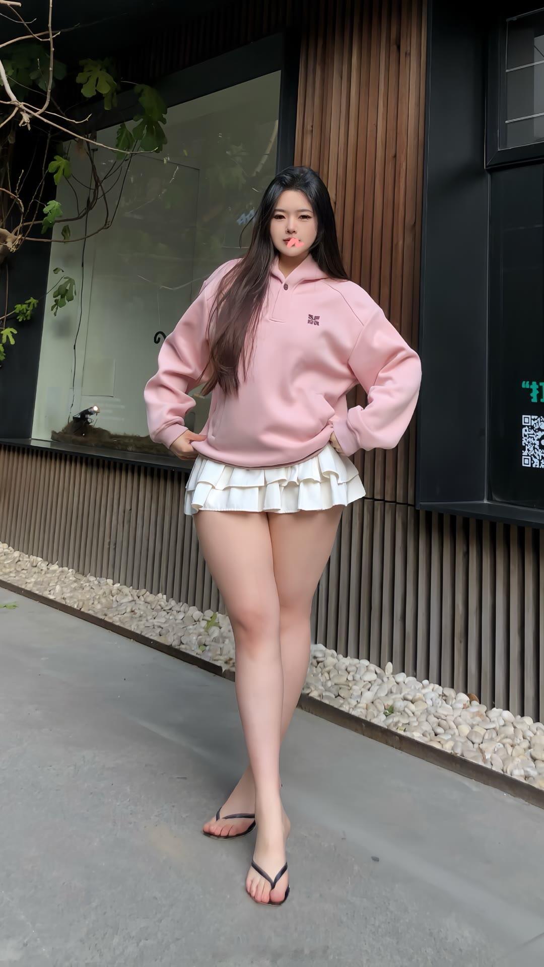 张天爱跟素人合影,胯真的好宽,大宅院似的