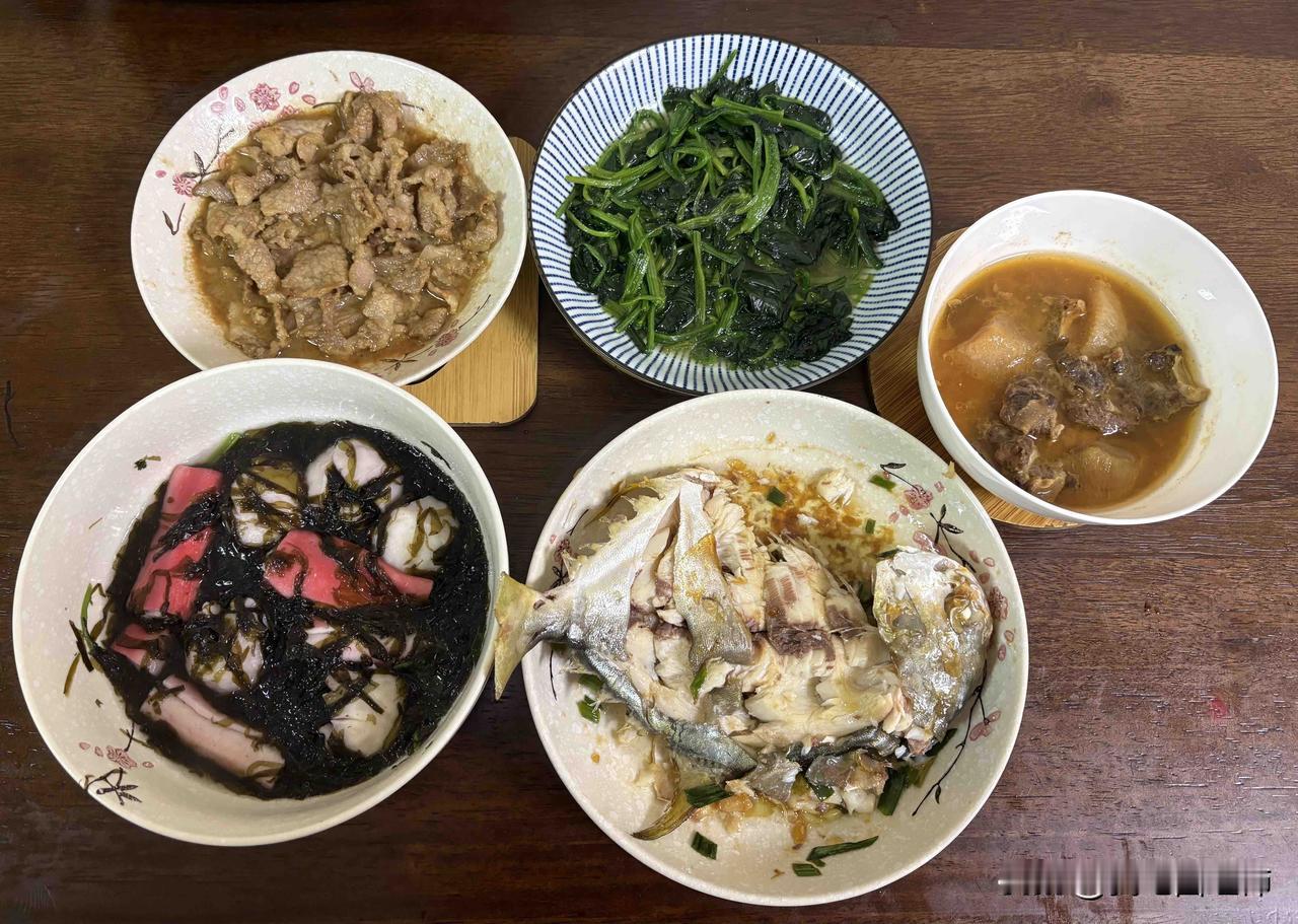 面对一桌剩菜他选择点外卖 队友十点多到家看到的剩菜,他觉得看起来没胃口不想吃。我把菜都热好,并把鱼翻了个面,他还是宁愿点外卖。 其实婆婆煮的这些菜都很美味,只是肯定刚煮好热腾腾的更有食欲,但没办法,队友经常加班,回家时间不固定,有时能赶上一起吃,大多时回来晚就只能吃剩的。