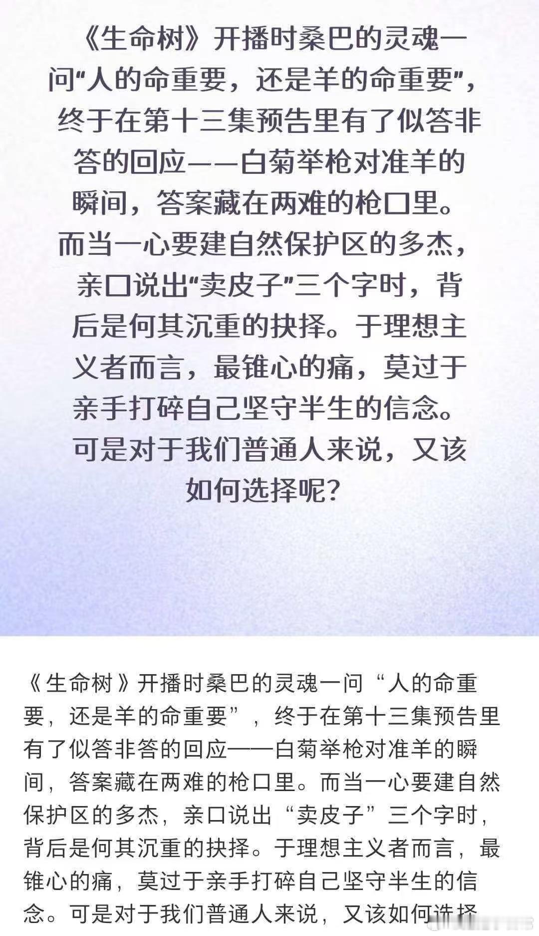 生命树羊重要还是人重要 生命树羊重要还是人重要的讨论太戳人,没有完美的选择,只有不放弃的坚守,这才是好剧该有的内核