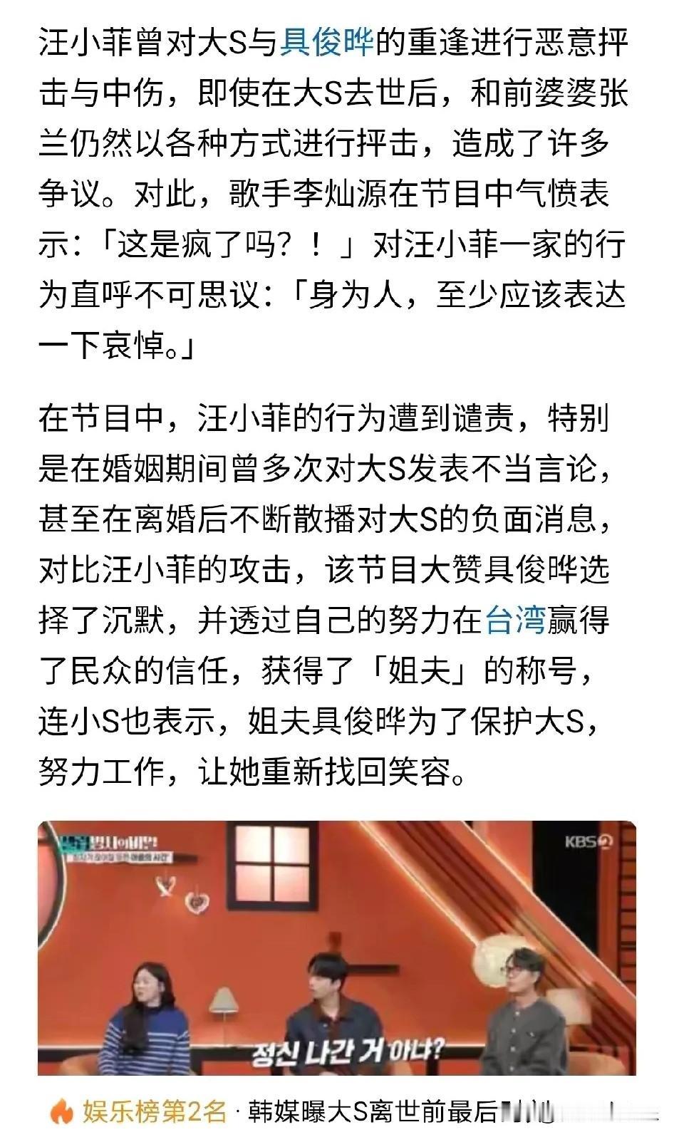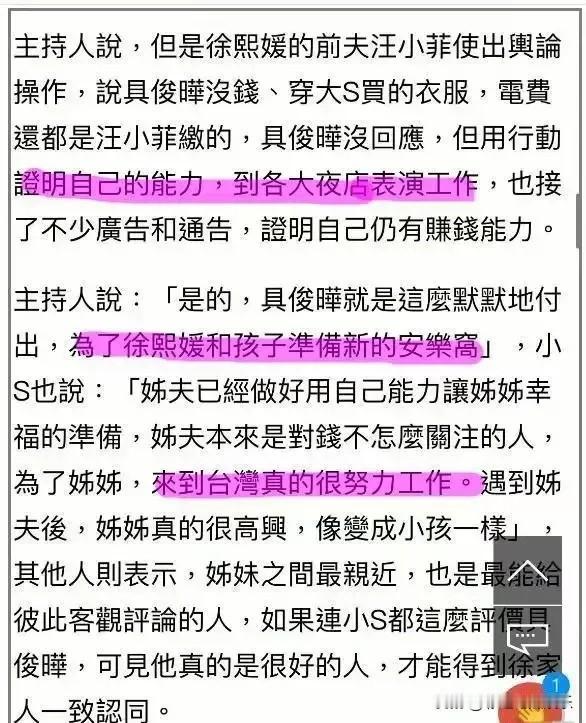 原来具俊晔守墓上节目目的是为了洗白,不想被指责软饭硬吃没有照顾好大S,害大S意外离世。 具俊晔拎包入住信义豪宅白吃白喝不提,每个月房贷都由汪小菲出也不提,所有财产都给了大S,还有巨额抚养费不提,汪小菲不仅要养大S和孩子们还要养具俊晔只字未提。 具俊晔夜场打碟演出费两万一次挂嘴边,是为了给大S和孩子们一个安乐窝,明明信义豪宅首付是汪小菲出的,一套豪宅上亿,具俊晔拿什么买?洗白不要太明显。