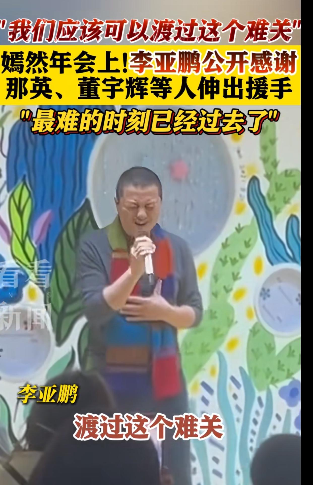 李亚鹏年会哽咽:为了这群孩子,他扛了20年,看哭了! 谁能想到,曾经那个意气风发的李亚鹏,会在年会上哭得像个孩子。 2月4日嫣然天使儿童医院的年会上,他站在台上,话没说几句,声音就开始哽咽,那句“我想我们应该可以渡过这个难关”,听得人心里一酸。 他为了这群唇腭裂的孩子,已经扛了整整20年。从2006年为女儿创立嫣然基金,到如今医院陷入欠租困境,他从万众瞩目的演员,变成了为公益四处奔波的“普通人”。 难吗?太难了。可他从来没说过放弃,公开求助、直播带货,把赚来的每一分钱都往医院里填,就怕这些孩子没了依靠。 年会上,他红着眼眶,一遍遍感谢管虎、梁静、那英、董宇辉这些朋友,感谢每一个伸出援手的网友。他说,等新院址定了,一定会把所有账目和规划都公开,绝不辜负大家的信任。 他不是脆弱,是一个人扛了太多事的委屈,是拼尽全力也要守住初心的倔强。20年,他扛过争议,走过低谷,却始终没放下这群孩子。 这样的李亚鹏,真的太让人心疼,也太让人敬佩了!