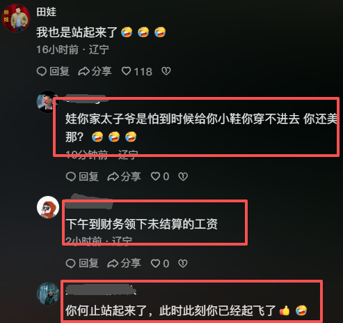 视频的发布者是赵大牛,田娃现身评论区:我也是站起来了!