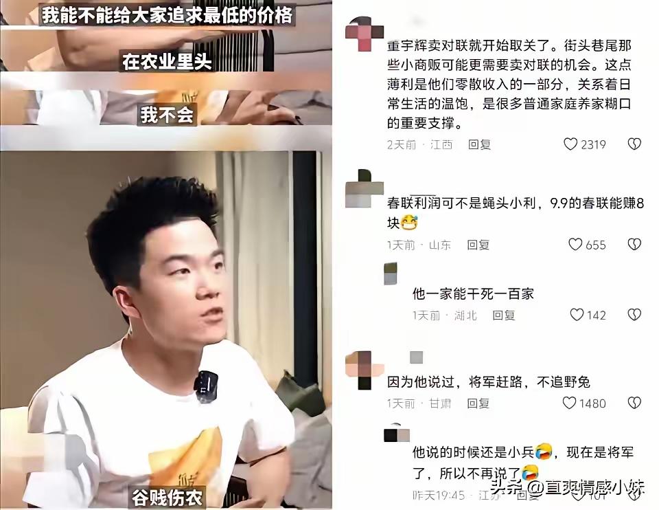 董宇辉卖春联被骂!其实董宇辉没有那么高大上,甚至高尚,更加不是什么道德楷模!都是你们当初被所谓的团队包装所欺骗,觉得他是知识的代言人,就应该谦谦君子,不食人间烟火,实际上他和大家一样会饿肚子,需要吃饭睡觉,你怎么样看?
