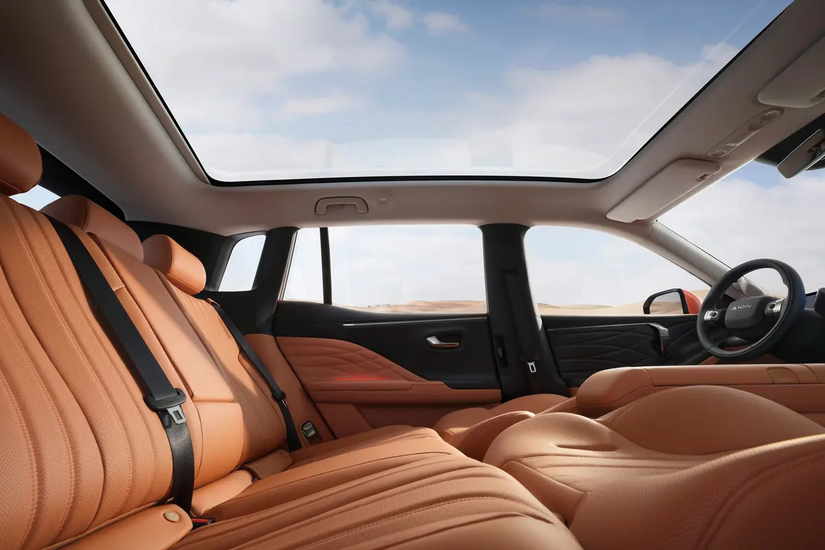 开埃安霸王龙家庭版和朋友出门游玩也太香了😎 空间是真的够敞亮,后排坐仨朋友完全不挤,开门角度大,搬露营装备、行李箱啥的超方便🧳电动尾门一按就开,不用手忙脚乱的,超省心。