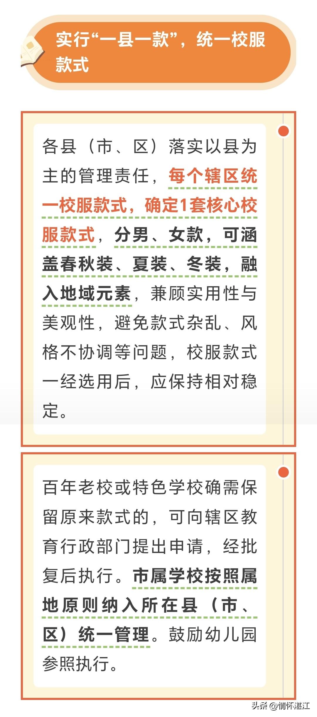 湛江市的中小学生有新校服穿了!从今年开始,湛江市的各县区在本辖区内实行统一的校服款式。当然,一些“名校”可以允许搞“特殊化”——继续保持原来的传统校服。相比于深圳市中小学生校服是全市统一,湛江市中小学生校服以县为单位统一校服,这或许就是有湛江特色的校服规定吧!大家觉得全市统一校服款式好,还是以县为单位统一校服款式好呢?不管哪一种做法,以后湛江市民不是跟学校订购中小学生校服,而是可以在社会商场自由购买,这也是一种进步,值得点赞。